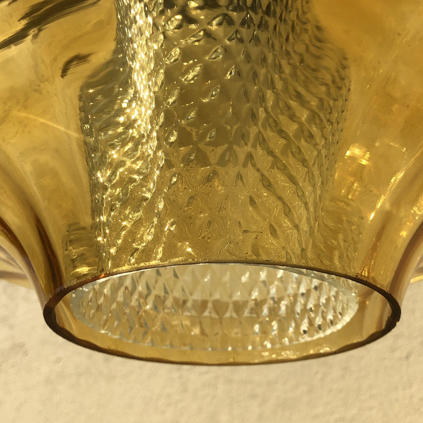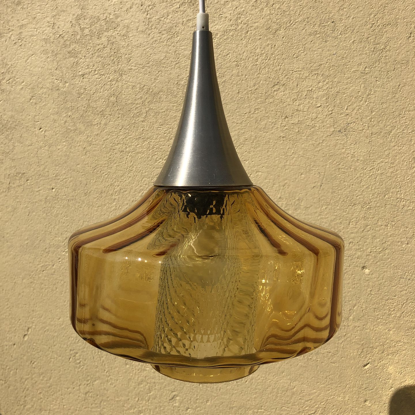 Stor ravfarvet loft lampe med ekstra glasindsats i pæn stand. Diameter ca. 28cm, Højde ca 35 cm
