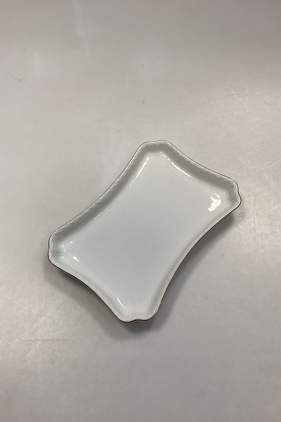 Royal Copenhagen Tradition Halvblonde m. Guld Aflang Bakke No. 716. Måler 24 cm x 17 cm (9.45 in. x 6.7 in.) Let slid på guldkant.