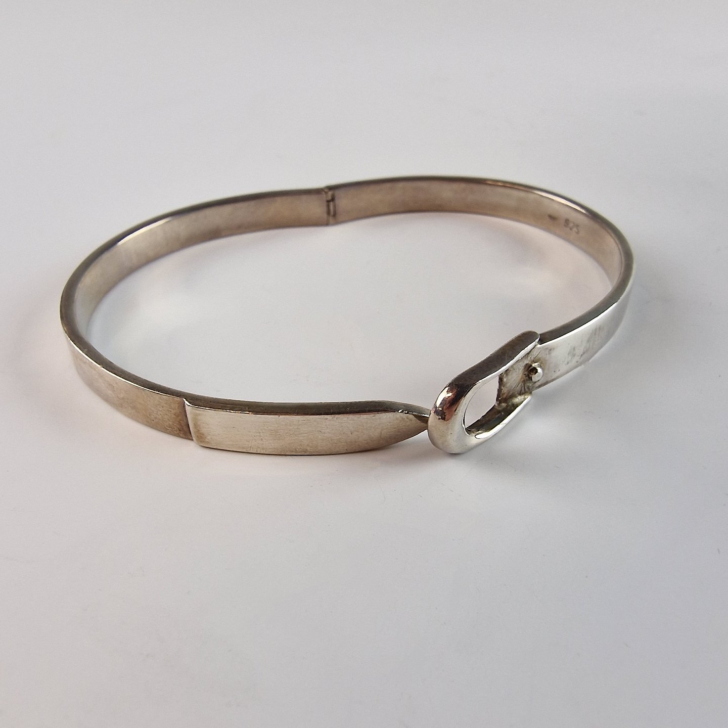 Armring af sølv med bæltespændelås, som kan justeres i tre længder.