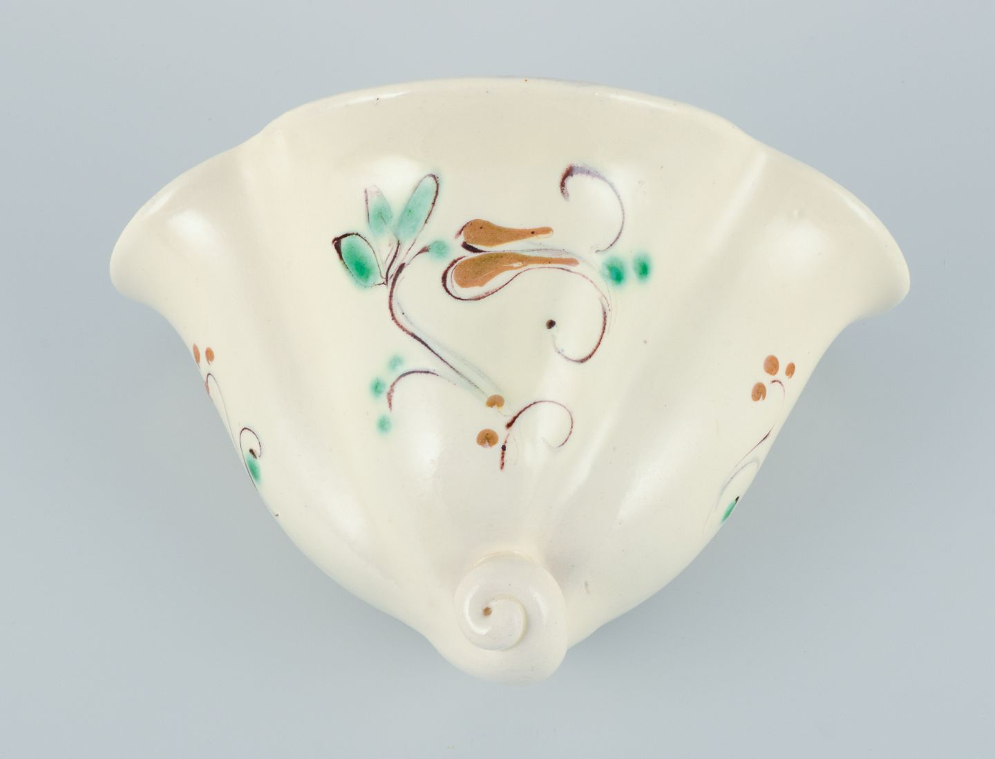 Kähler. Keramik urtepotteskjuler til væg. Glasur i lyse toner. Blomstermotiv.