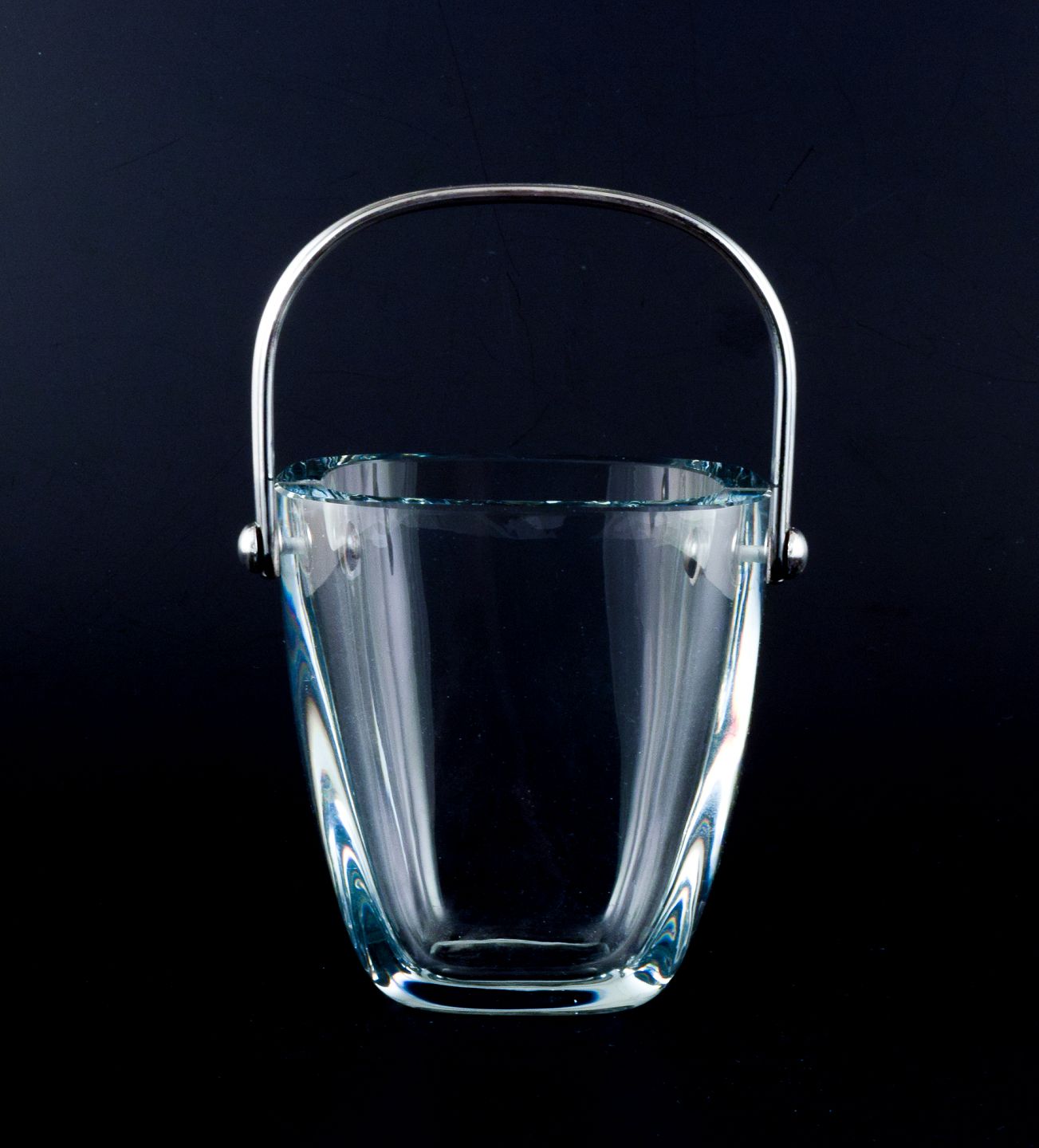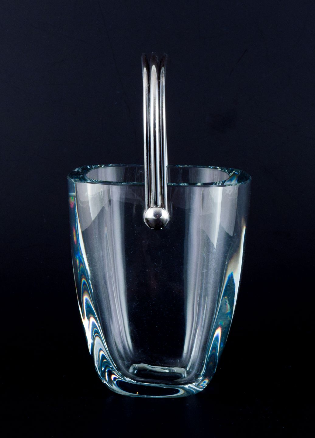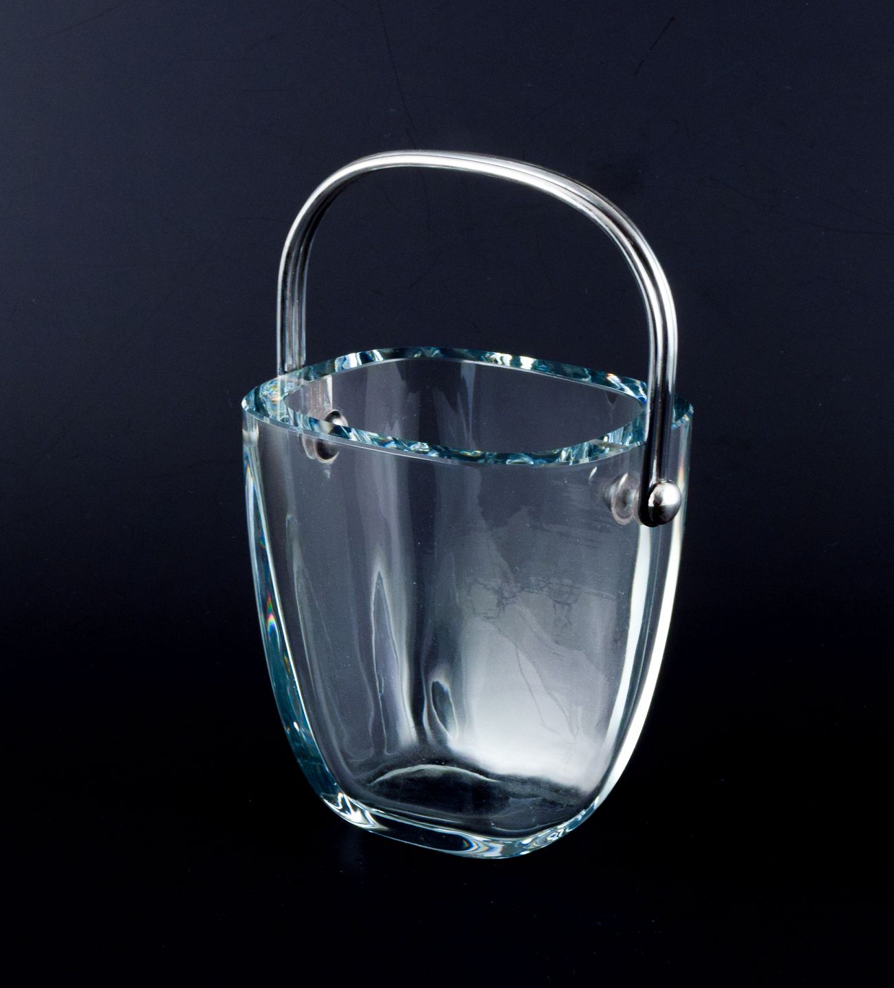Dansk design. Modernistisk isspand i kunstglas med hank i sterlingsølv.