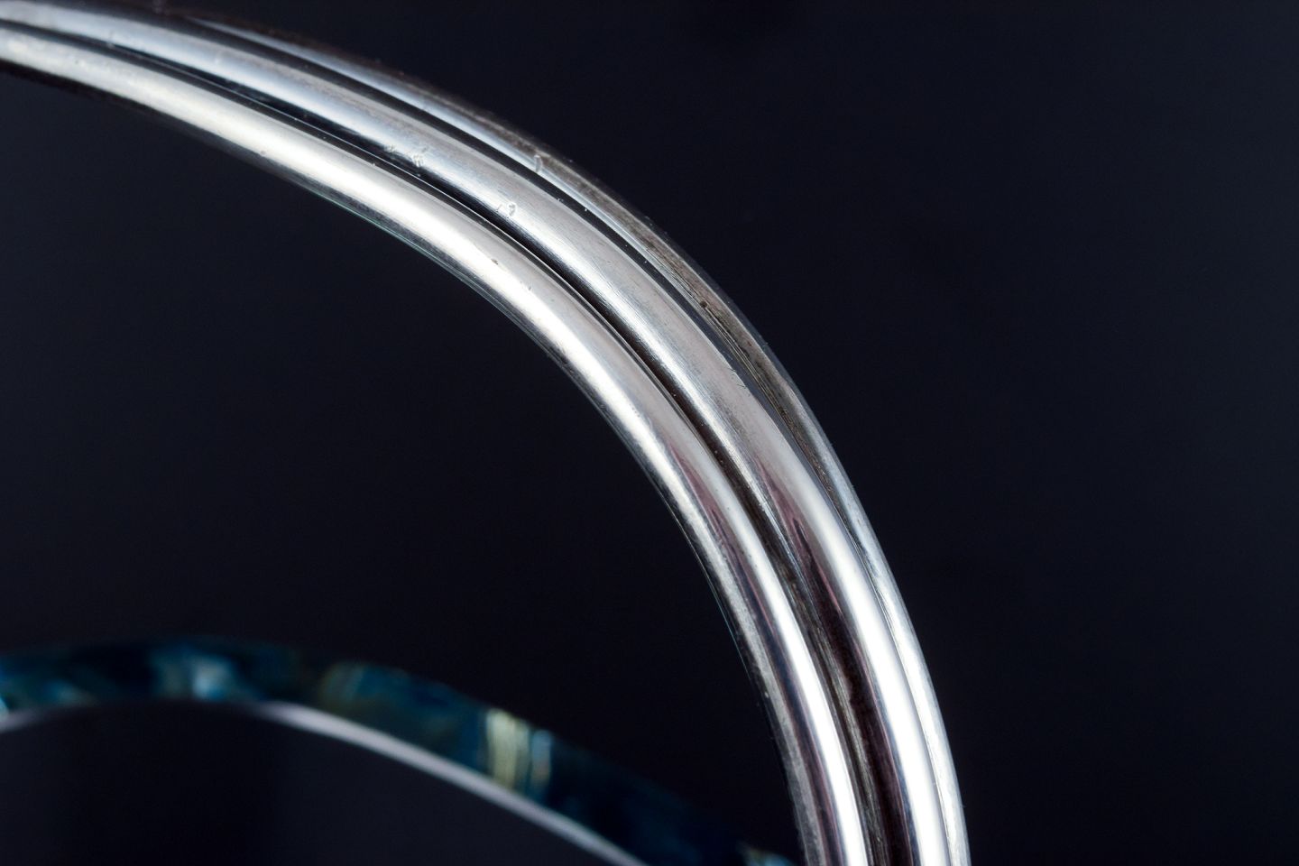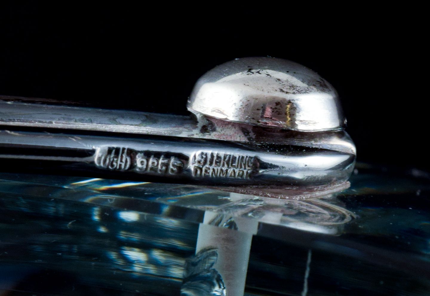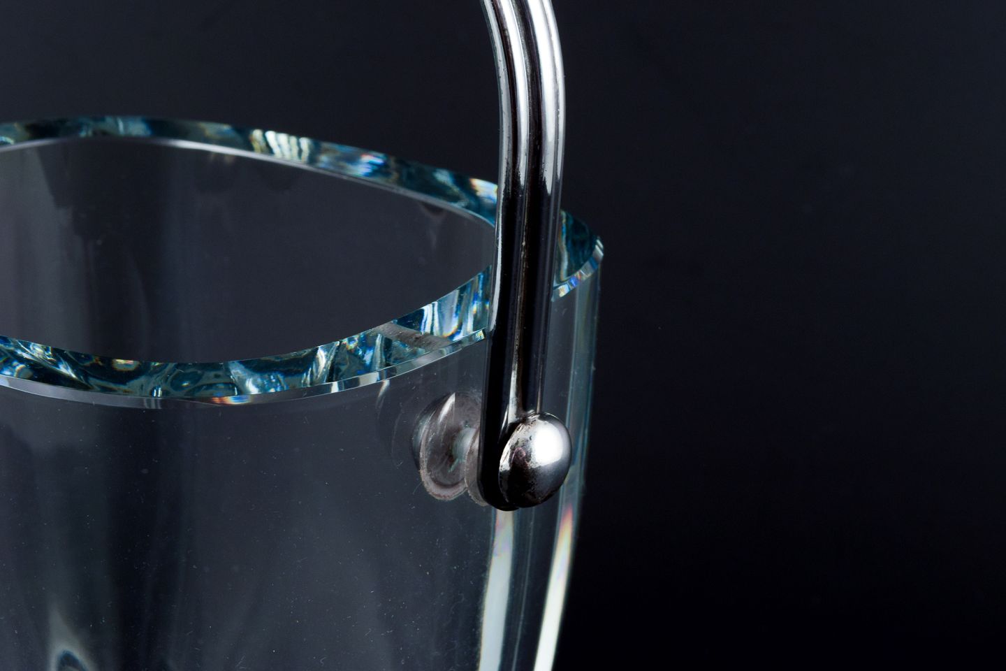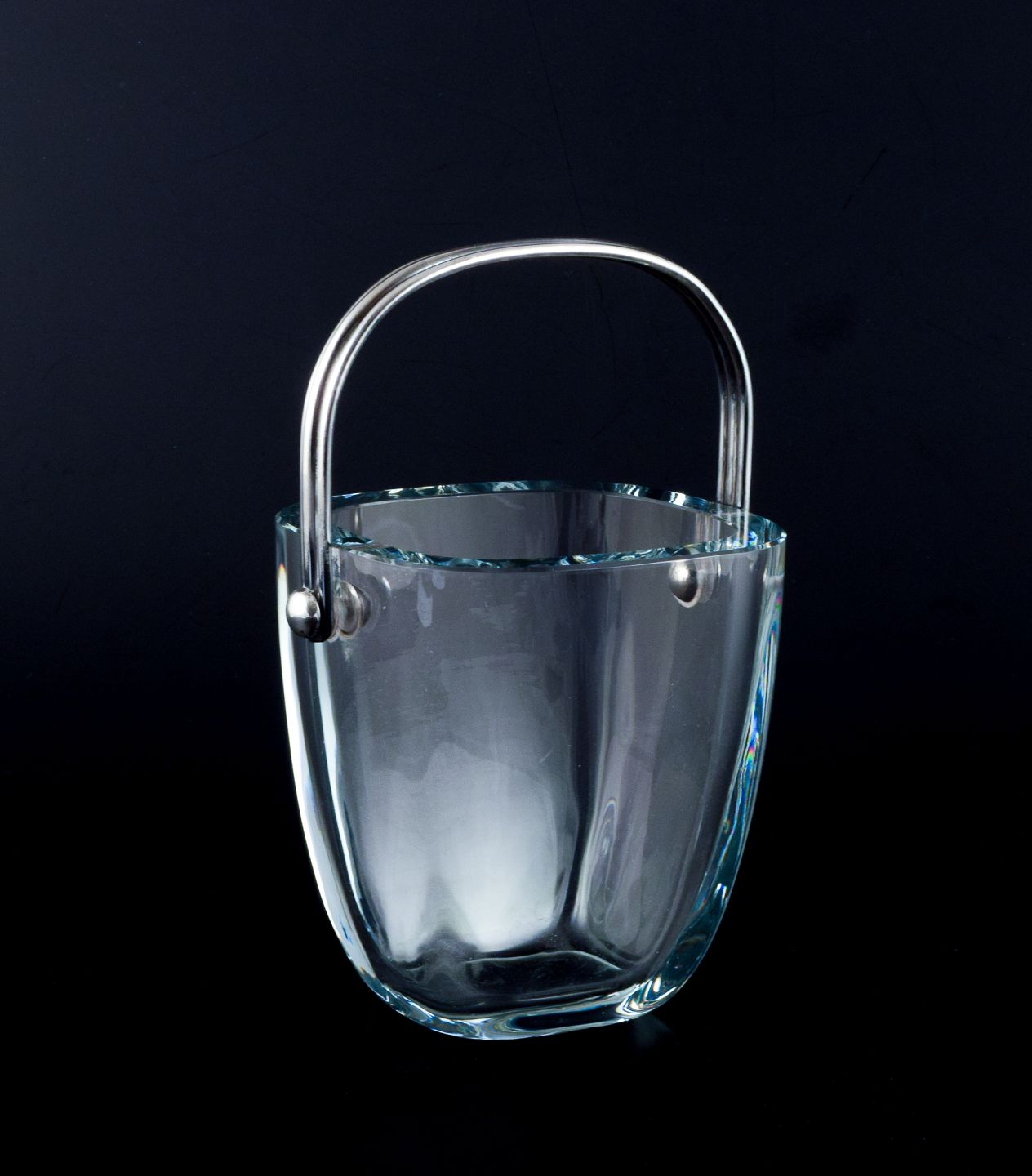 Dansk design. Modernistisk isspand i kunstglas med hank i sterlingsølv.