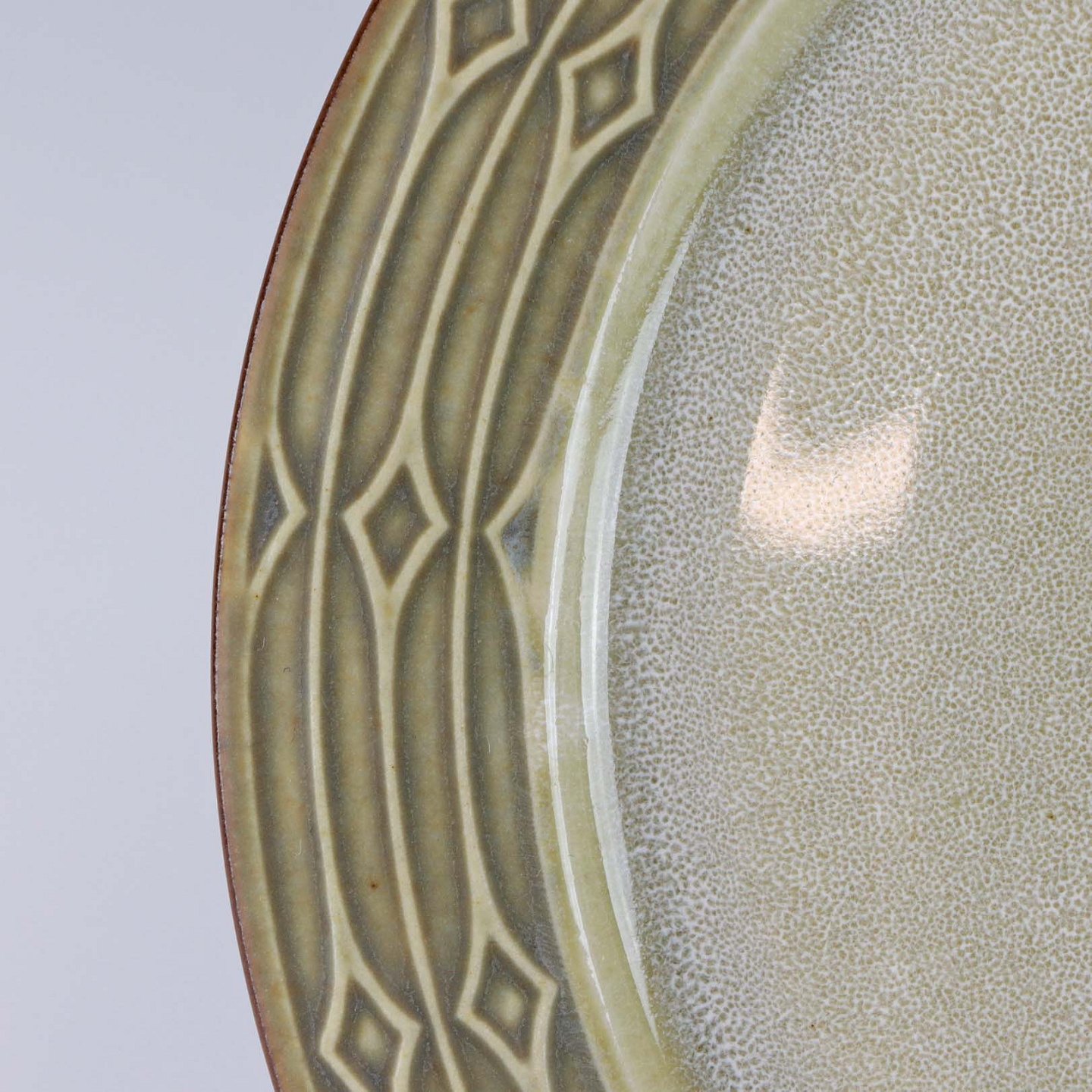 Stellet Rune er glaseret i grønne og råhvide farver med en brun kant.