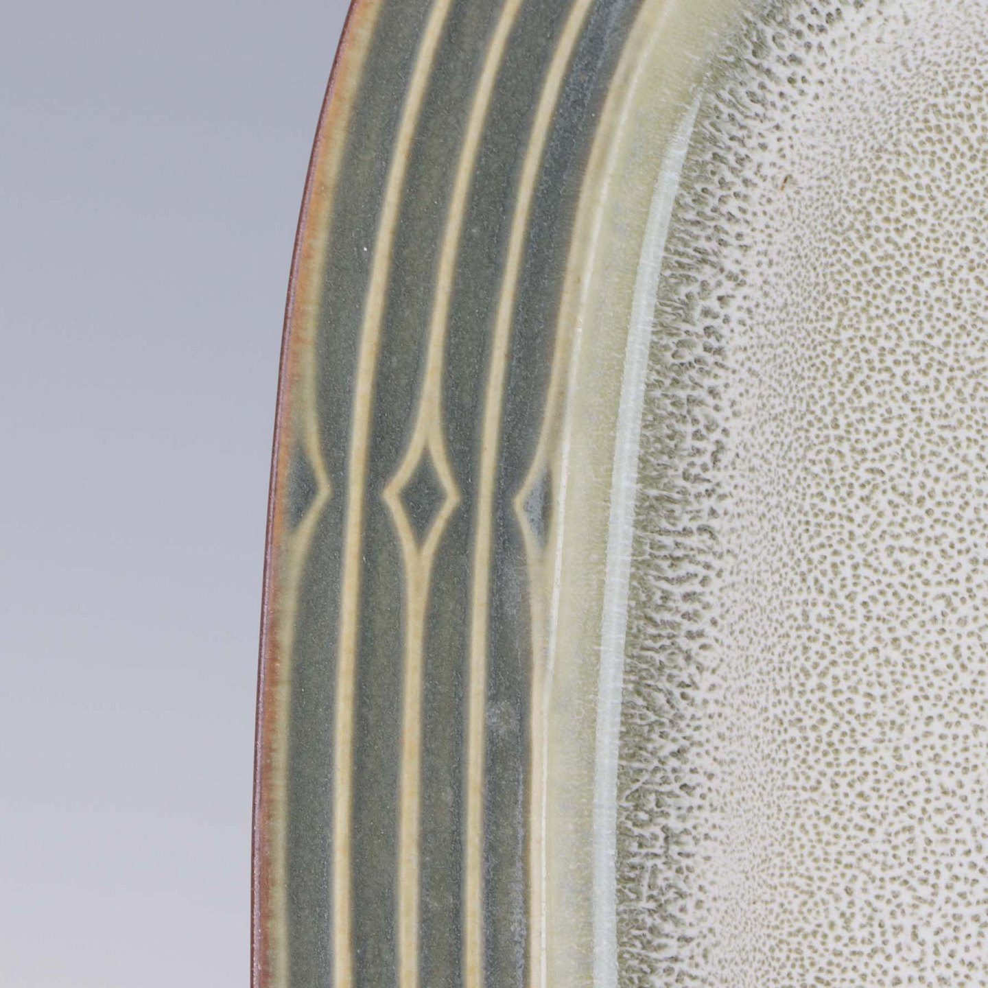 Stellet Rune er glaseret i grønne og råhvide farver med en brun kant.