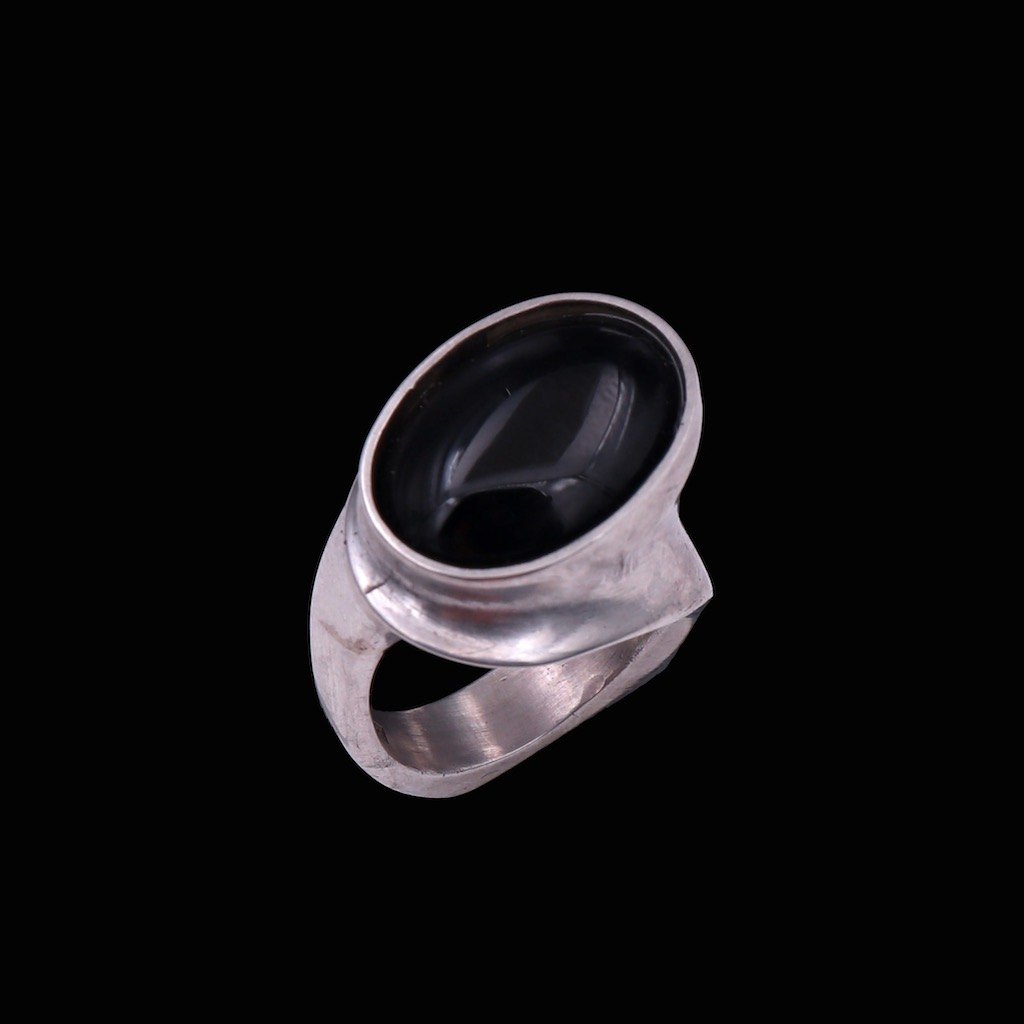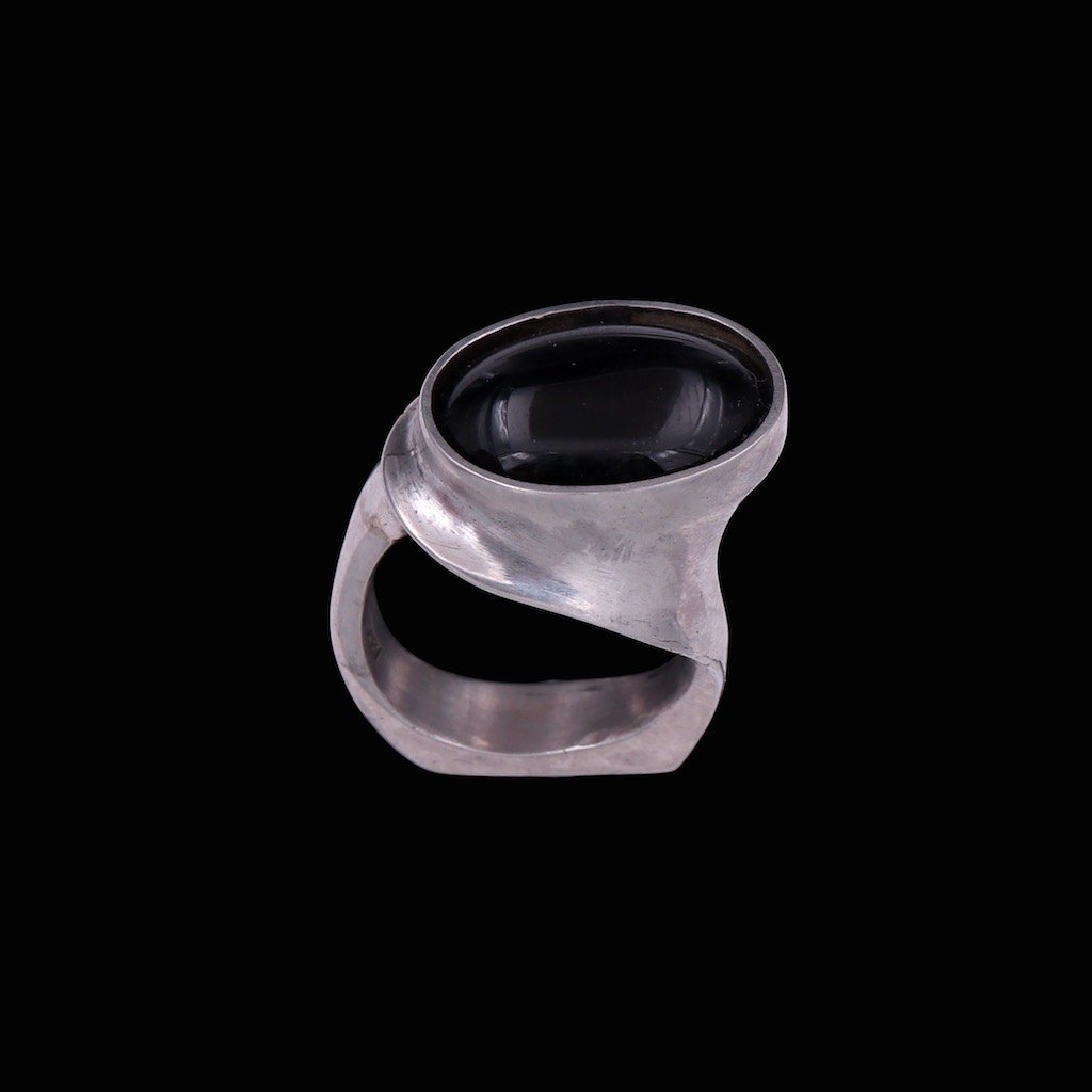 Hans Hansen. Ring i sterling sølv med onyx #10280 - Allan Scharff.