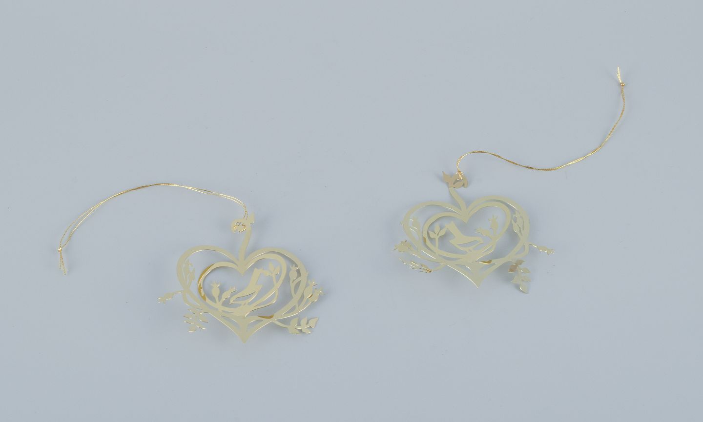 Royal Copenhagen ”Royal Christmas”. Ti juledekorationer i messing til ophæng på juletræ og i vinduet.