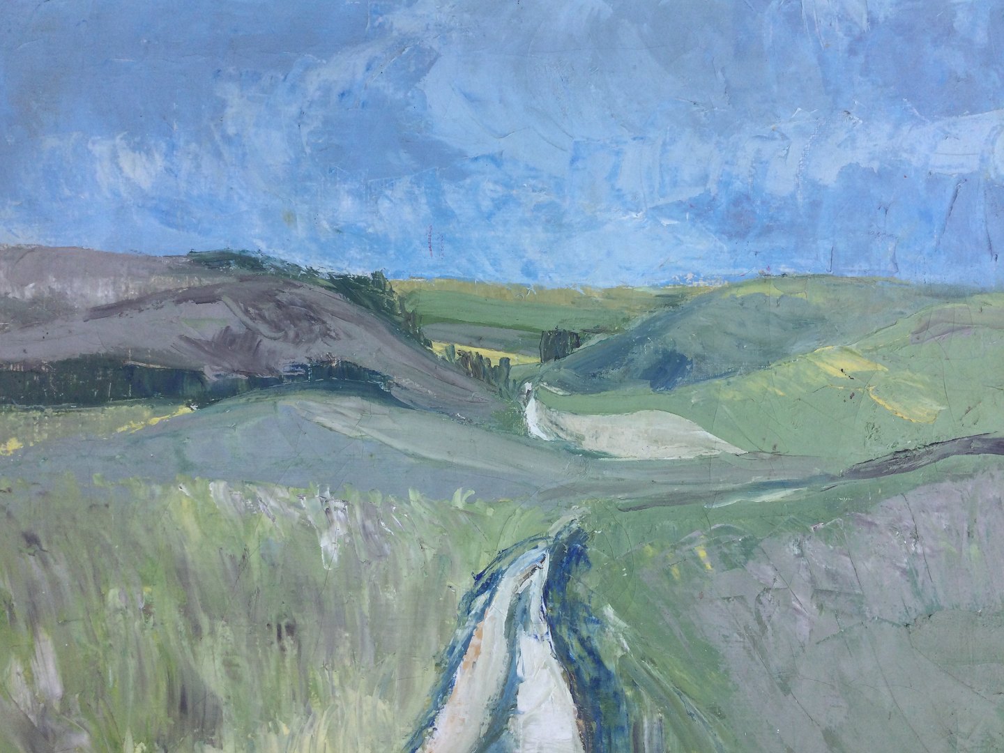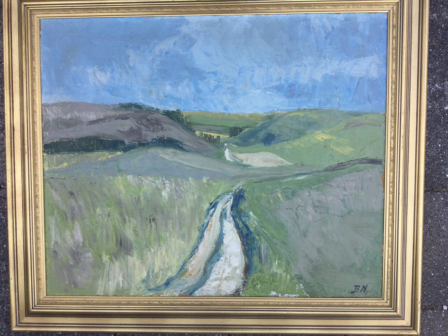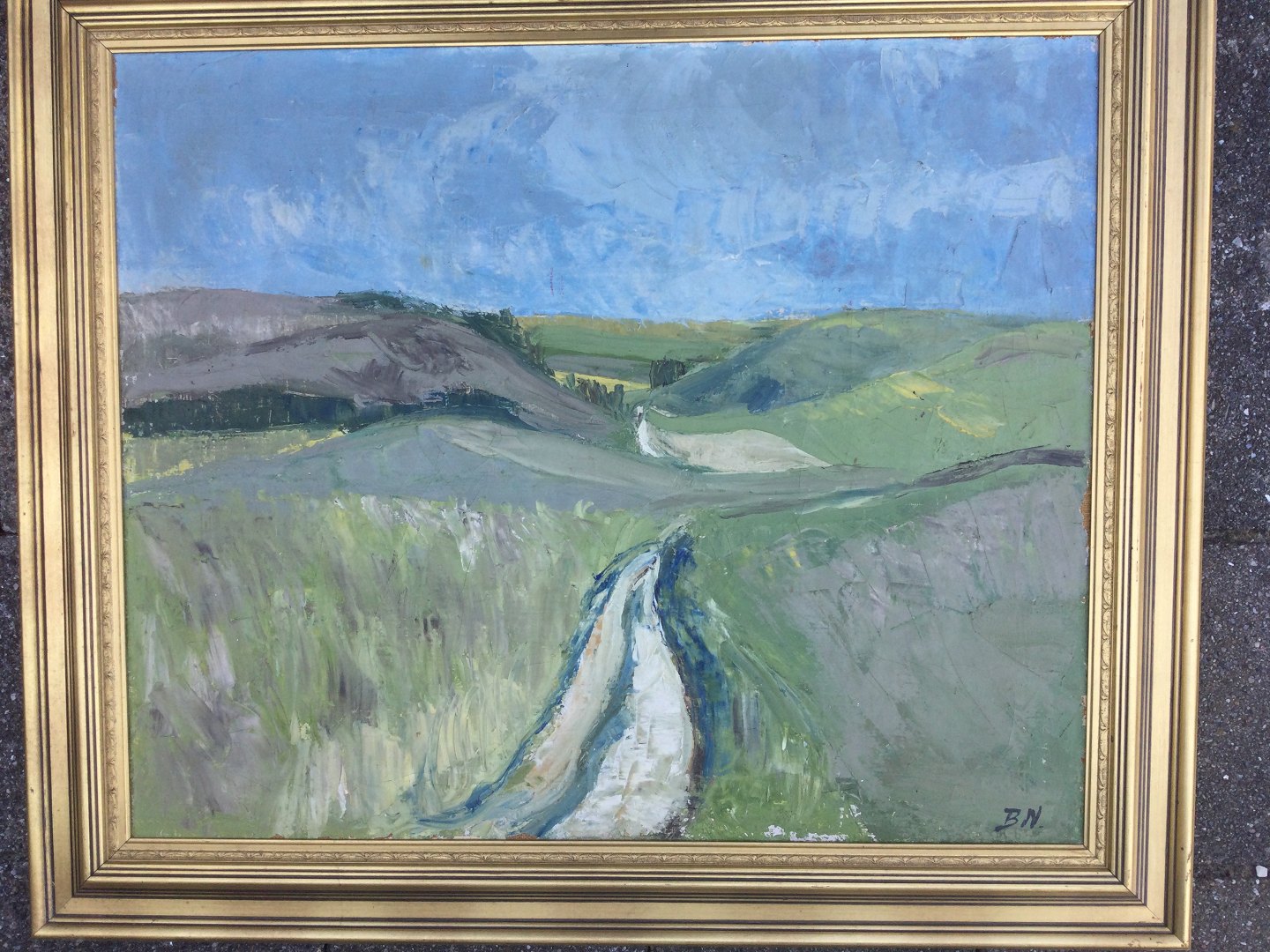 Maleri af Jørgen Budde Nielsen - Sommerlandskab fra Handrup på Mols 1957.