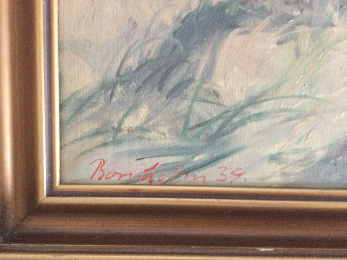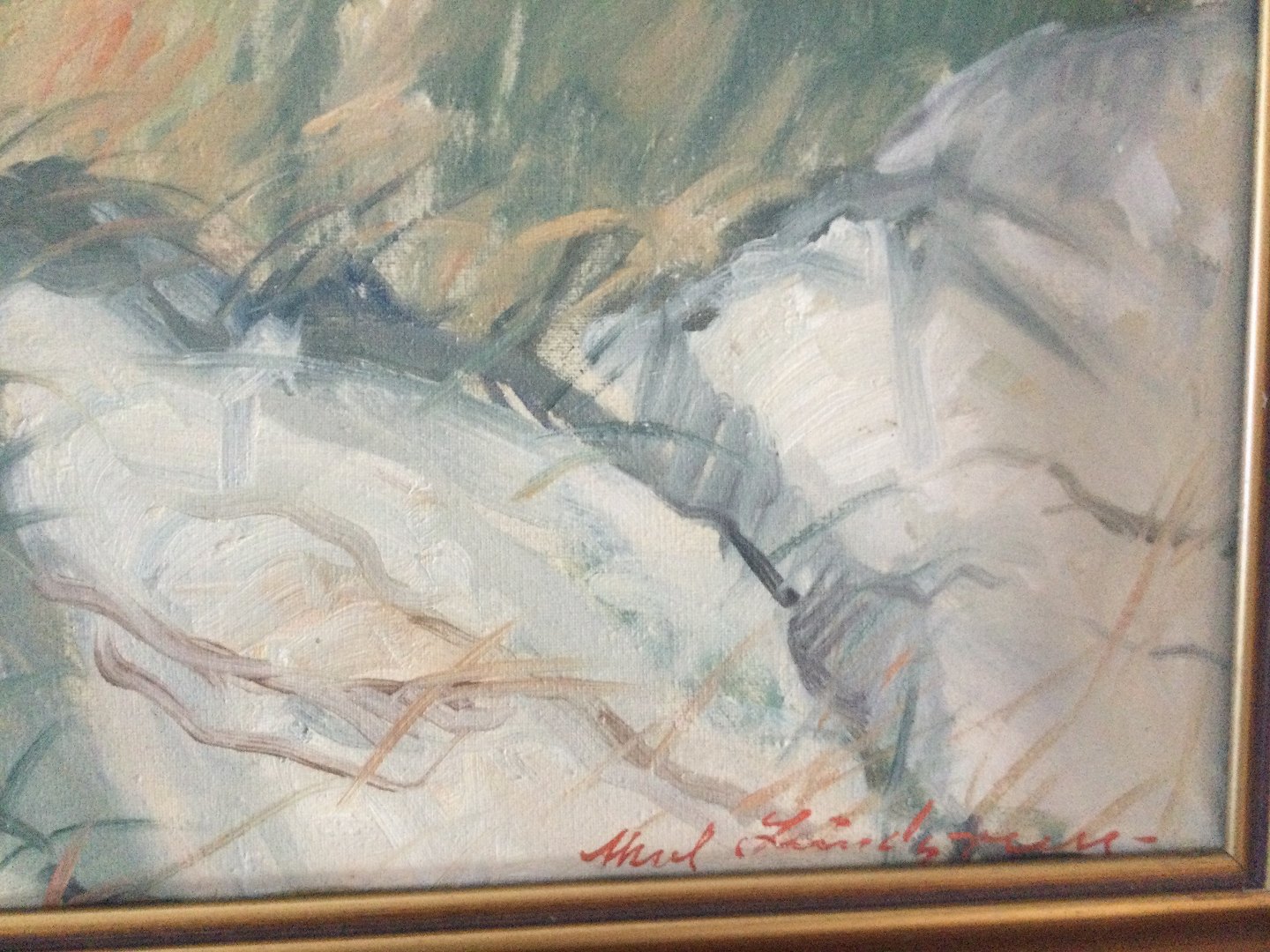 Maleri - Aksel Lundgreen 1939 - Fiskerhuse på Bornholm.