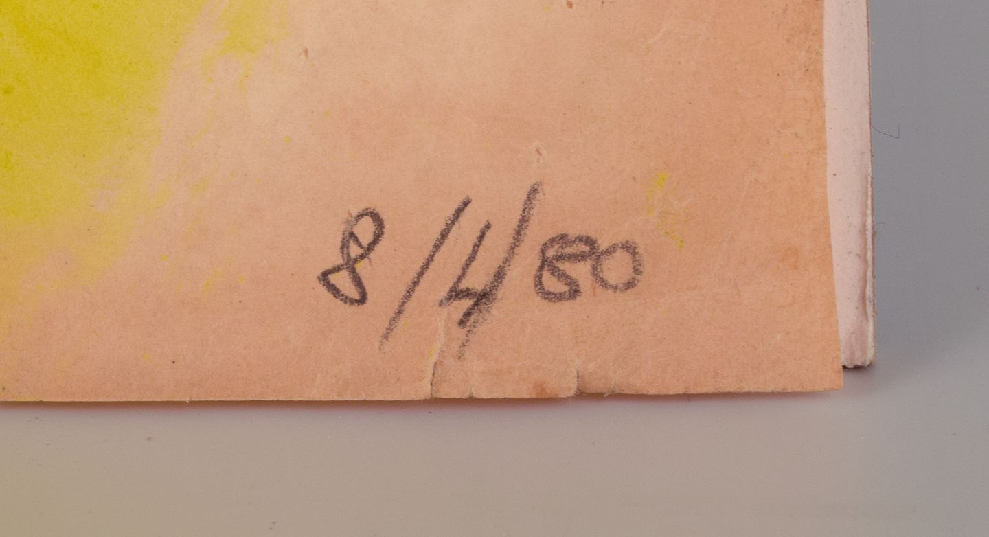 Monique Beucher (1934), fransk kunstner. Mixed media på papir.