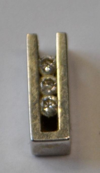 14 carat white gold pendant with 3 diamonds. Denmark. Design: Martel Katharina Elisabeth Traudel Toftegaard & Jens Gregers Toftegaard - Hadsten 1969 - 1989/2020. Stamped. H.: 1.4 cm. Diamond size: 1/32 Carat per piece.