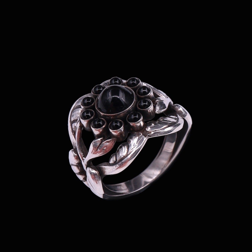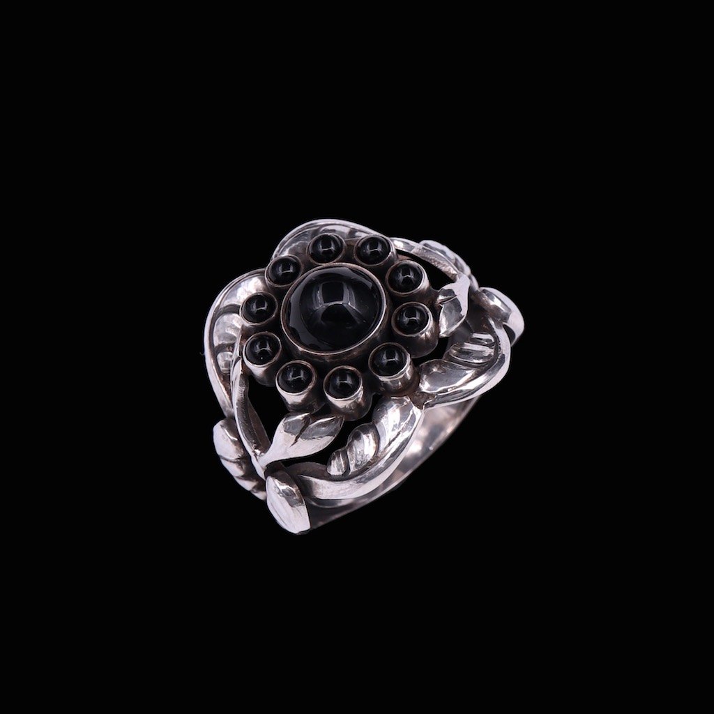Georg Jensen. Ring i sterlingsølv med onyx #10 - Moonlight Blossom.