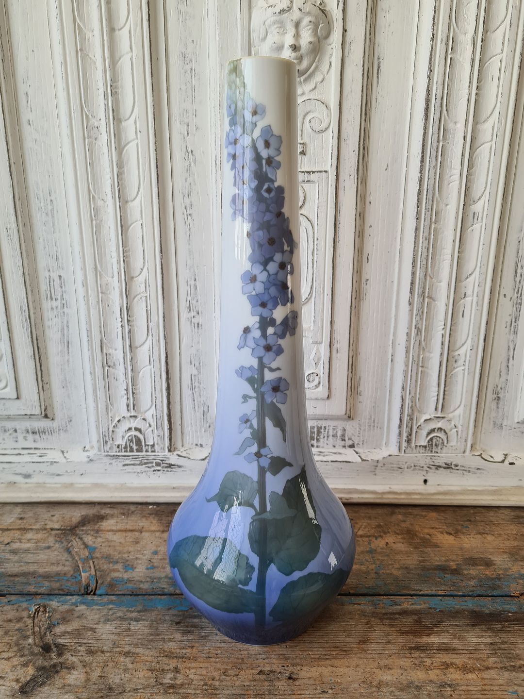 Royal Copenhagen unika Art Nouveau vase dekoreret med blå blomster 44 cm.