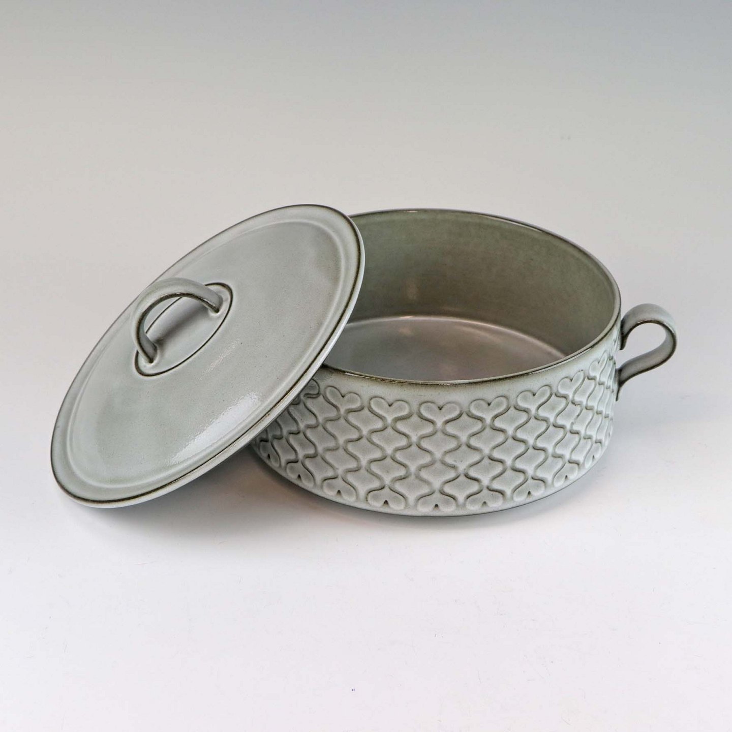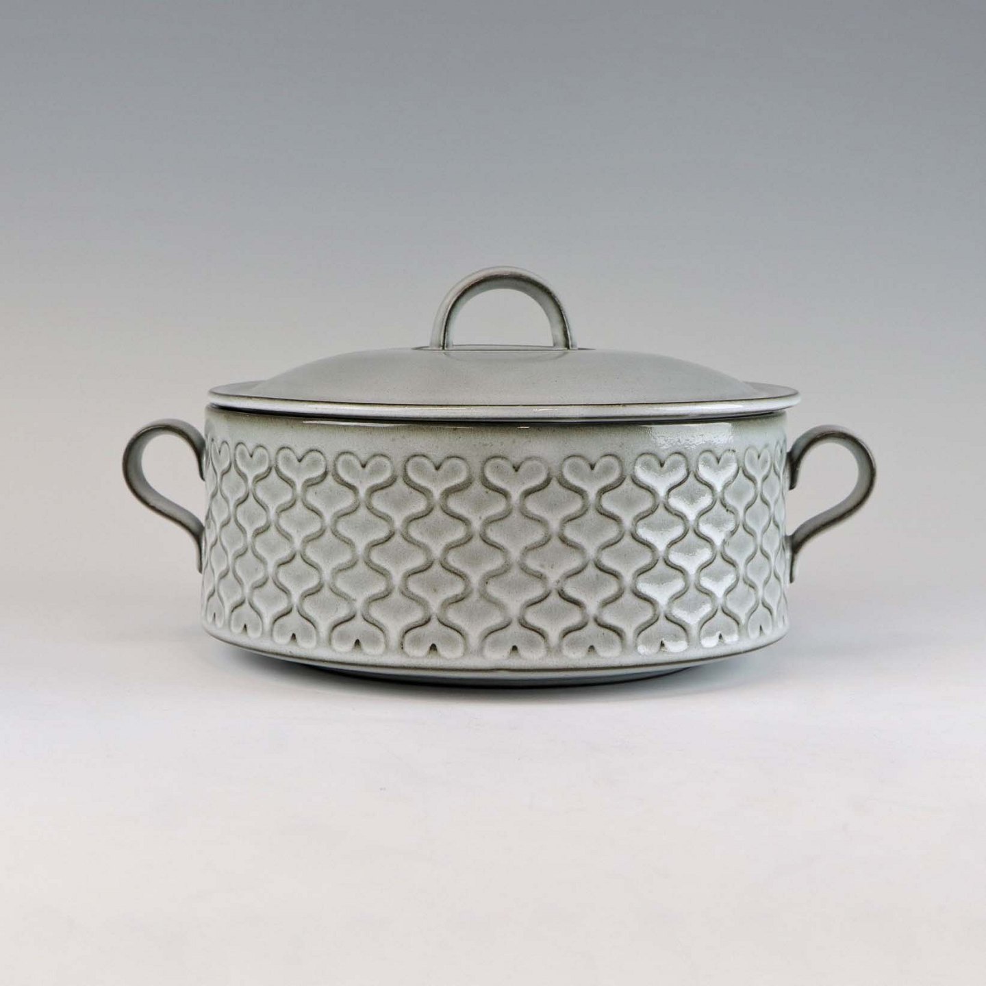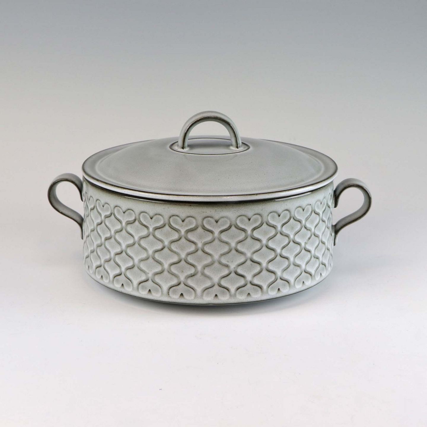 Lågfad af stentøj, med låg og 2 hanke, fra stellet Grå Cordial