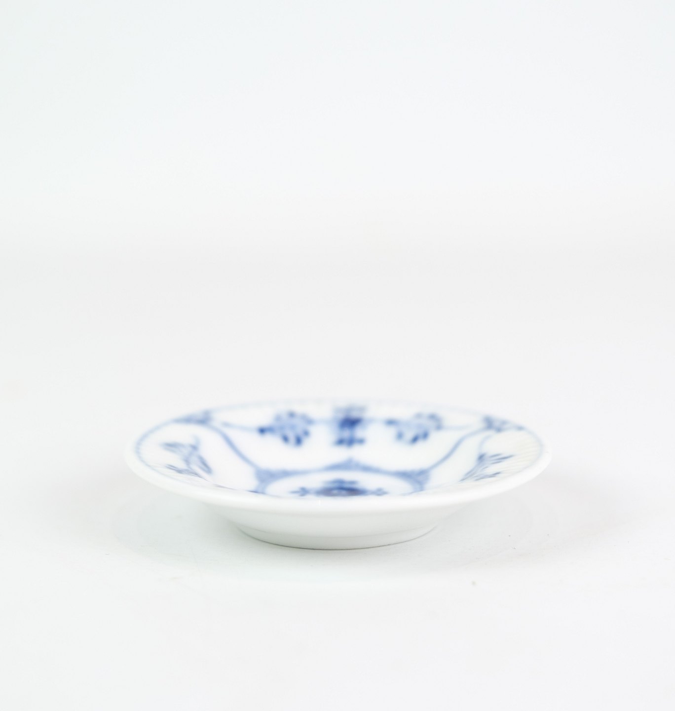 Royal Copenhagen Musselmalet Riflet kuvert smør asiet med dekorationsnummer 1/7 og mærket som "1. sort" er et raffineret stykke porcelæn, der bringer tidløs elegance til din borddækning.