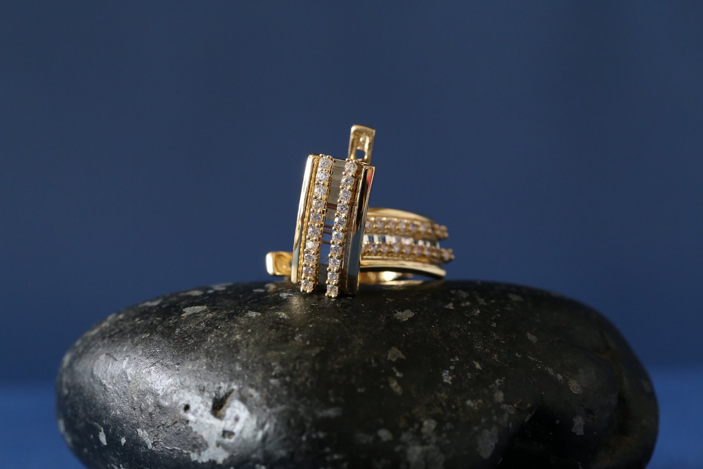 Flotte guld øreringe i 14 karat guld, stemplet 585, med indlagte klare sten i to rækker. Et par klassiske øreringe, der virkelig giver stil. Lyset fanges smukt i de små sten, og reflekteres. Dette gør disse øreringe til et elegant smykke at bære.