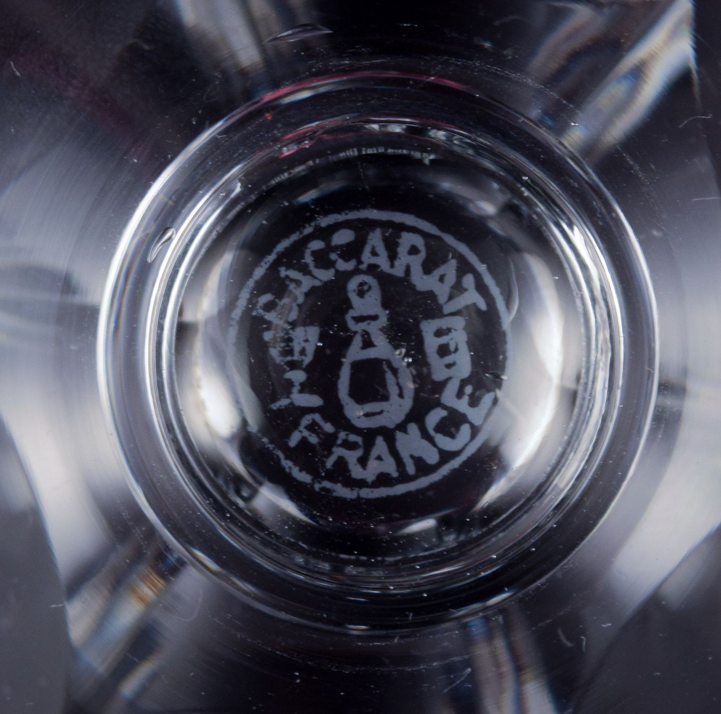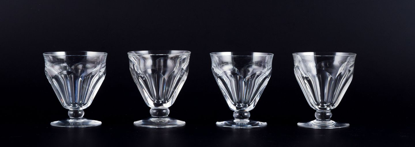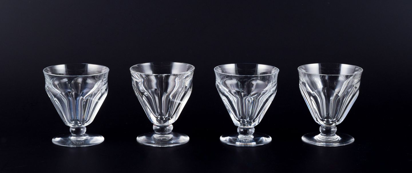 Baccarat, Frankrig. Et sæt på fire Art Deco hvidvinsglas i facetslebet krystalglas.