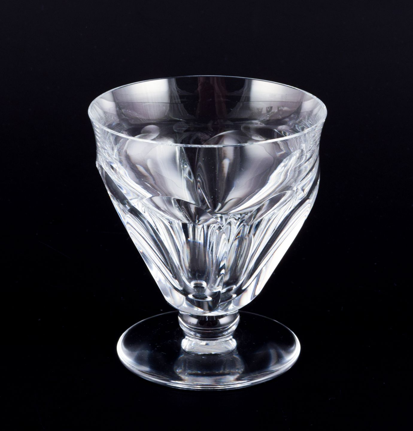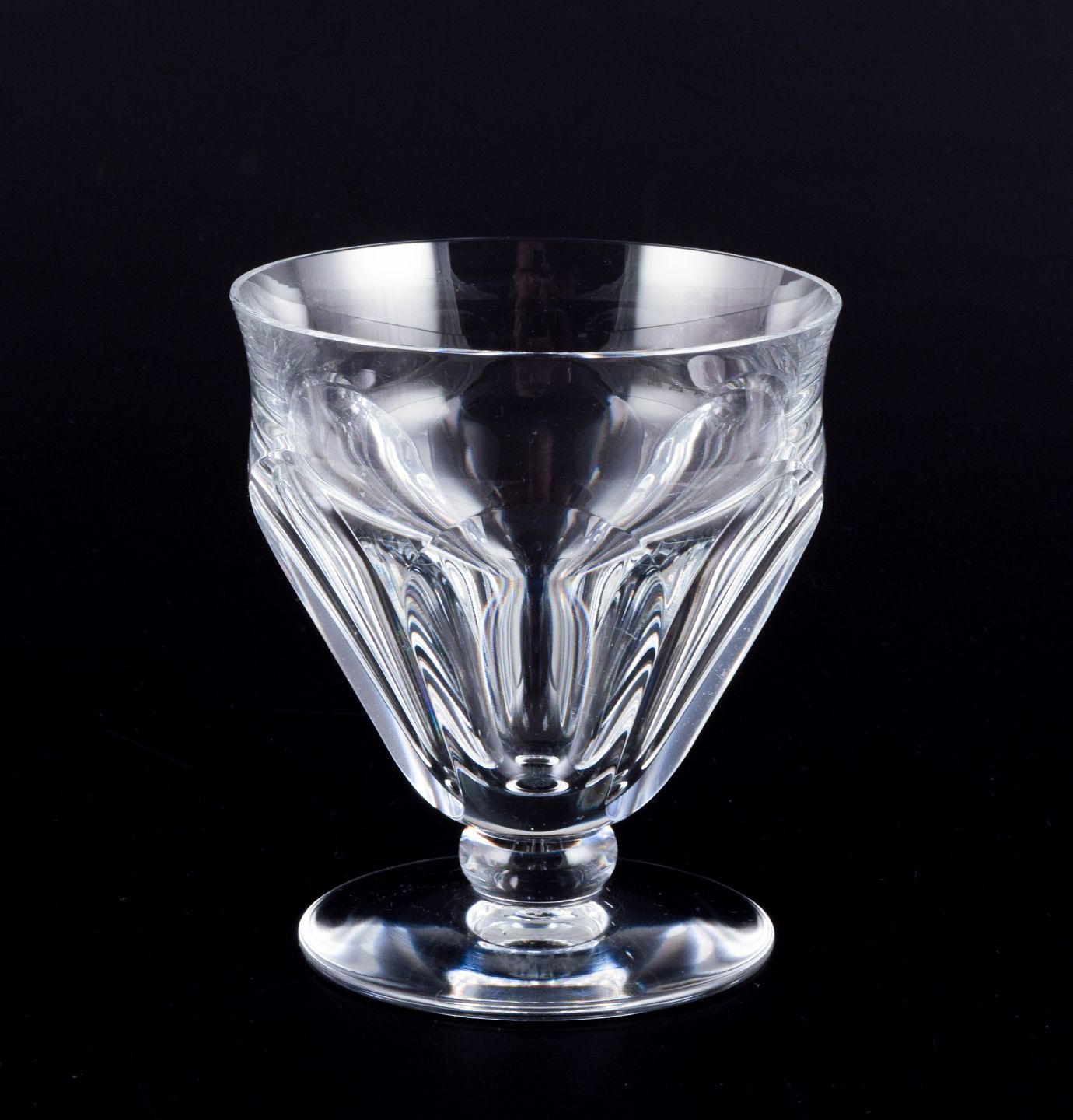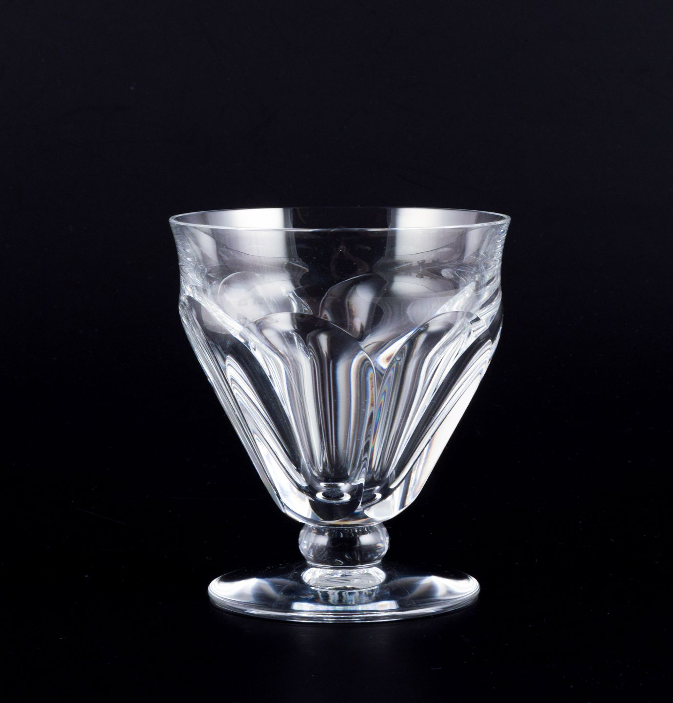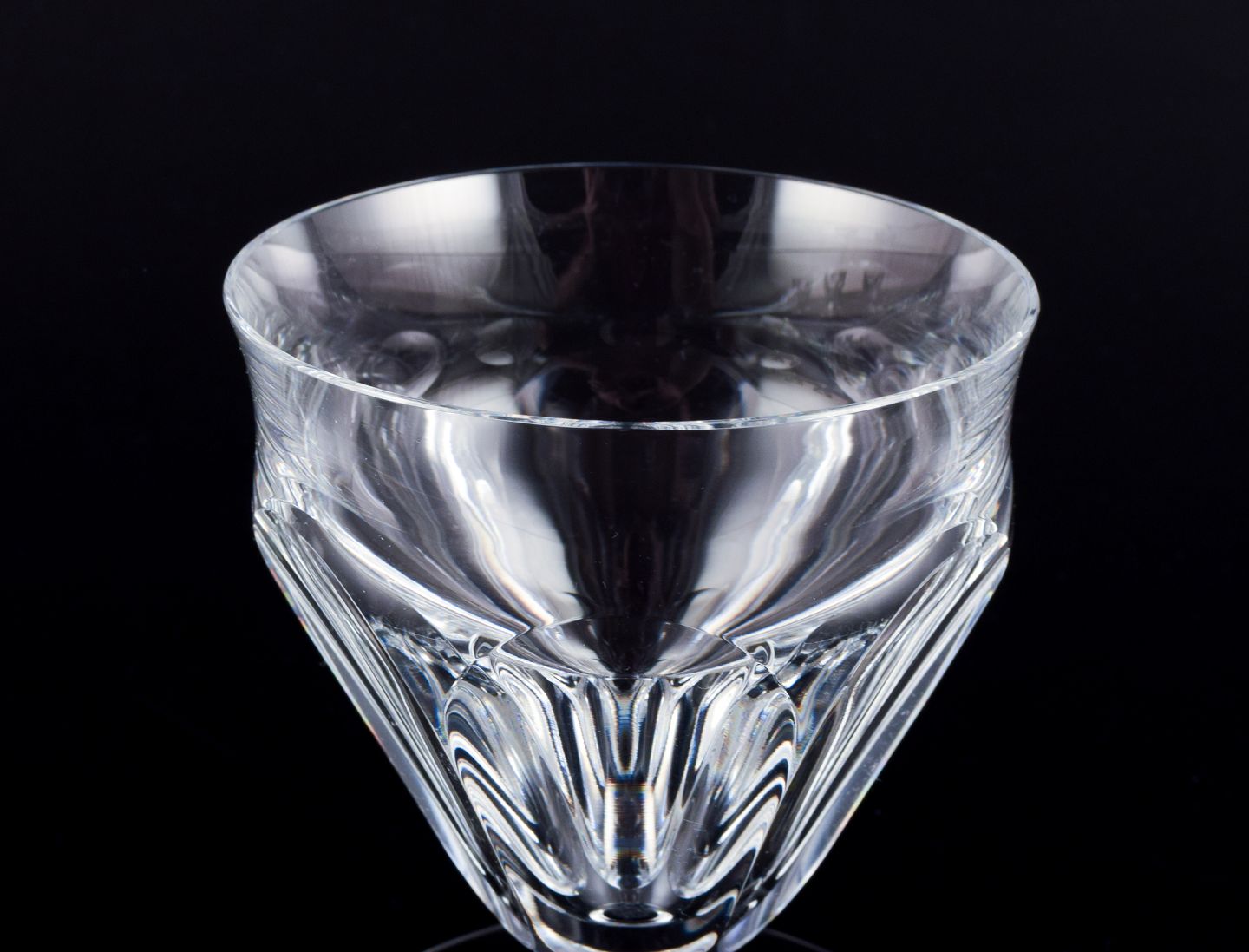 Baccarat, Frankrig. Et sæt på fire Art Deco hvidvinsglas i facetslebet krystalglas. På rund fod.