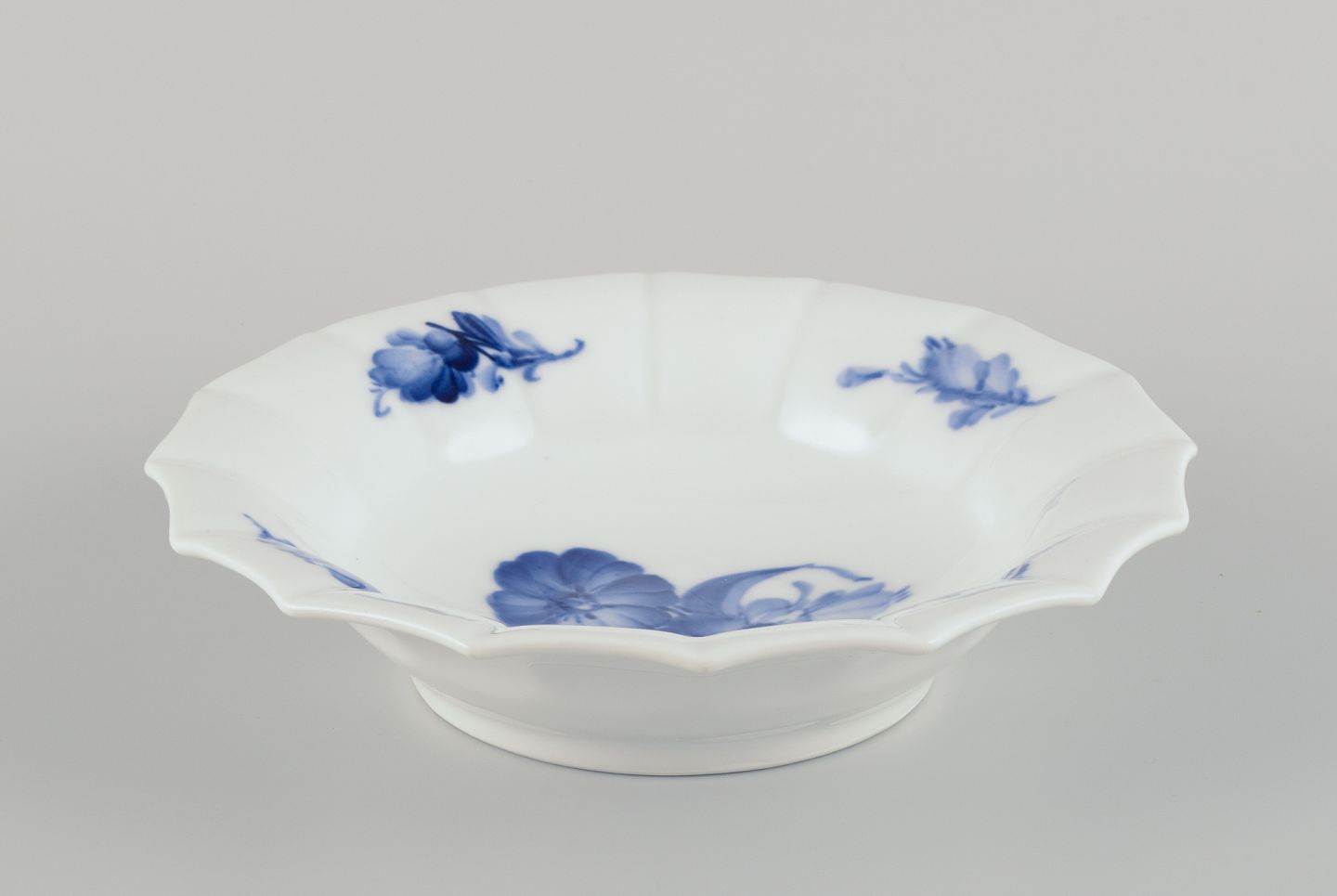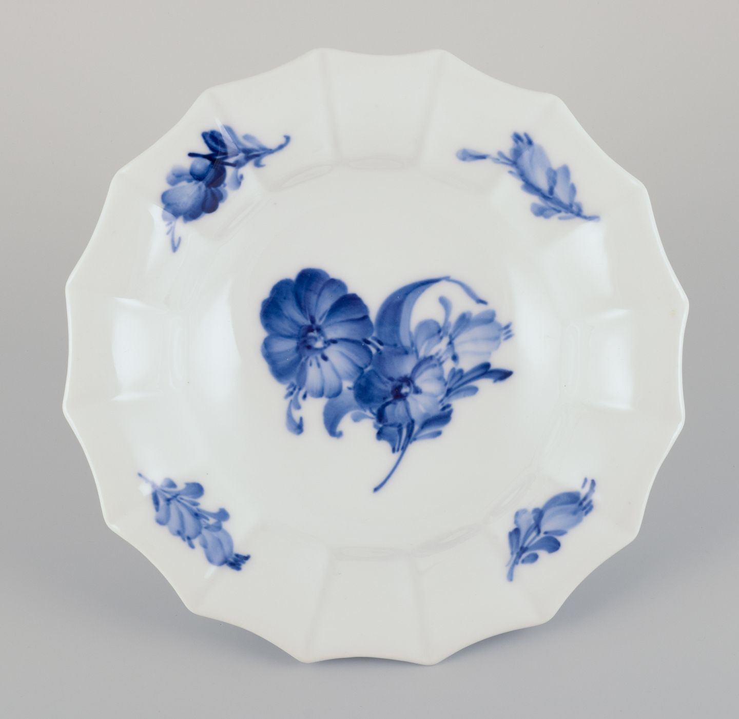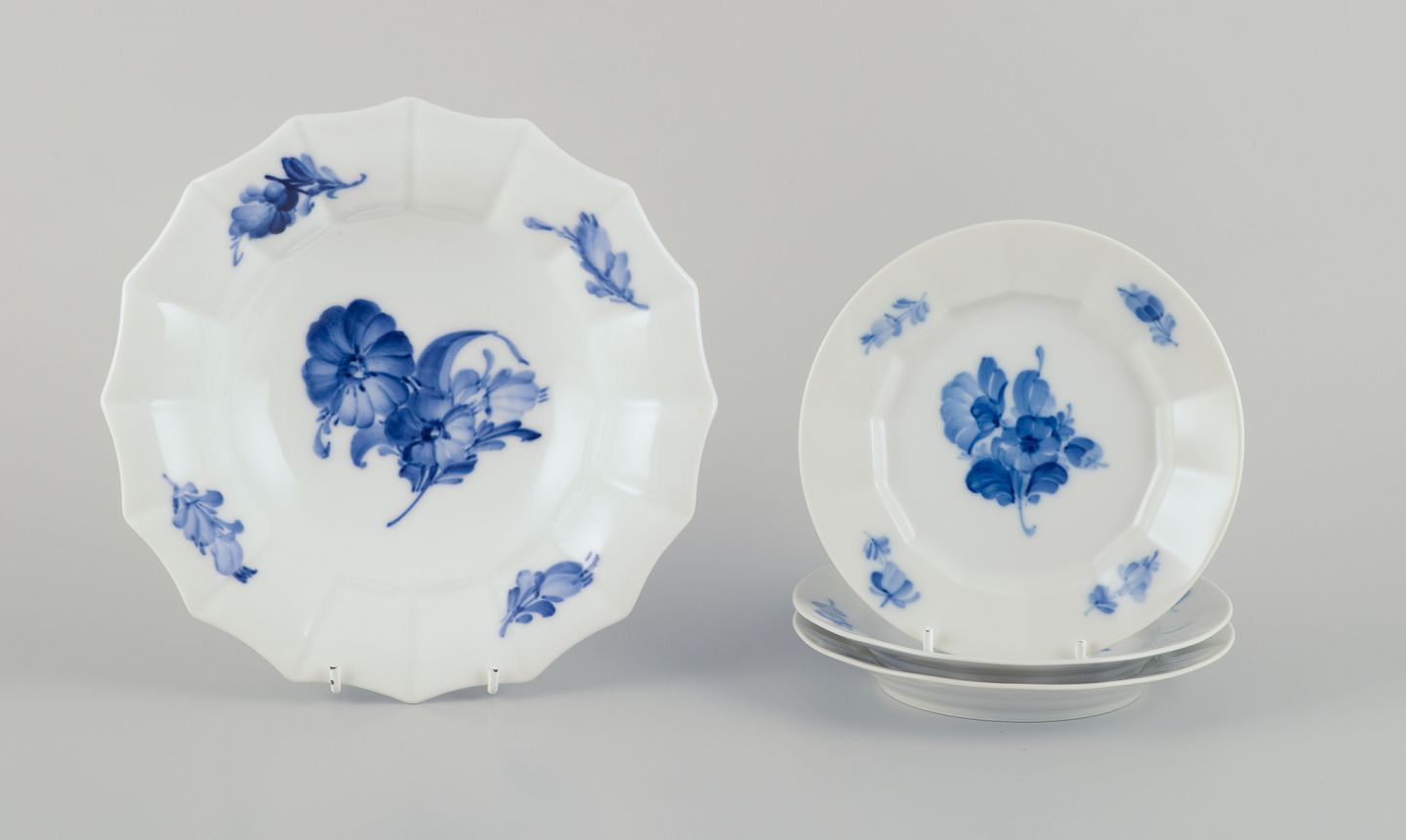 Royal Copenhagen Blå Blomst Kantet. Tre tallerkner og en skål. Håndmalet porcelæn.