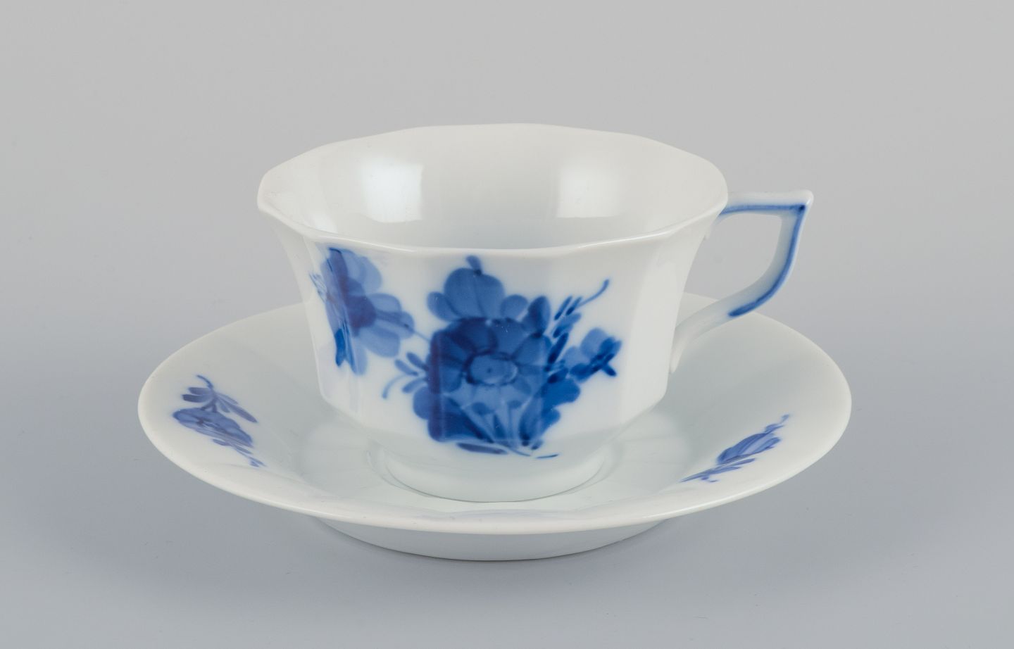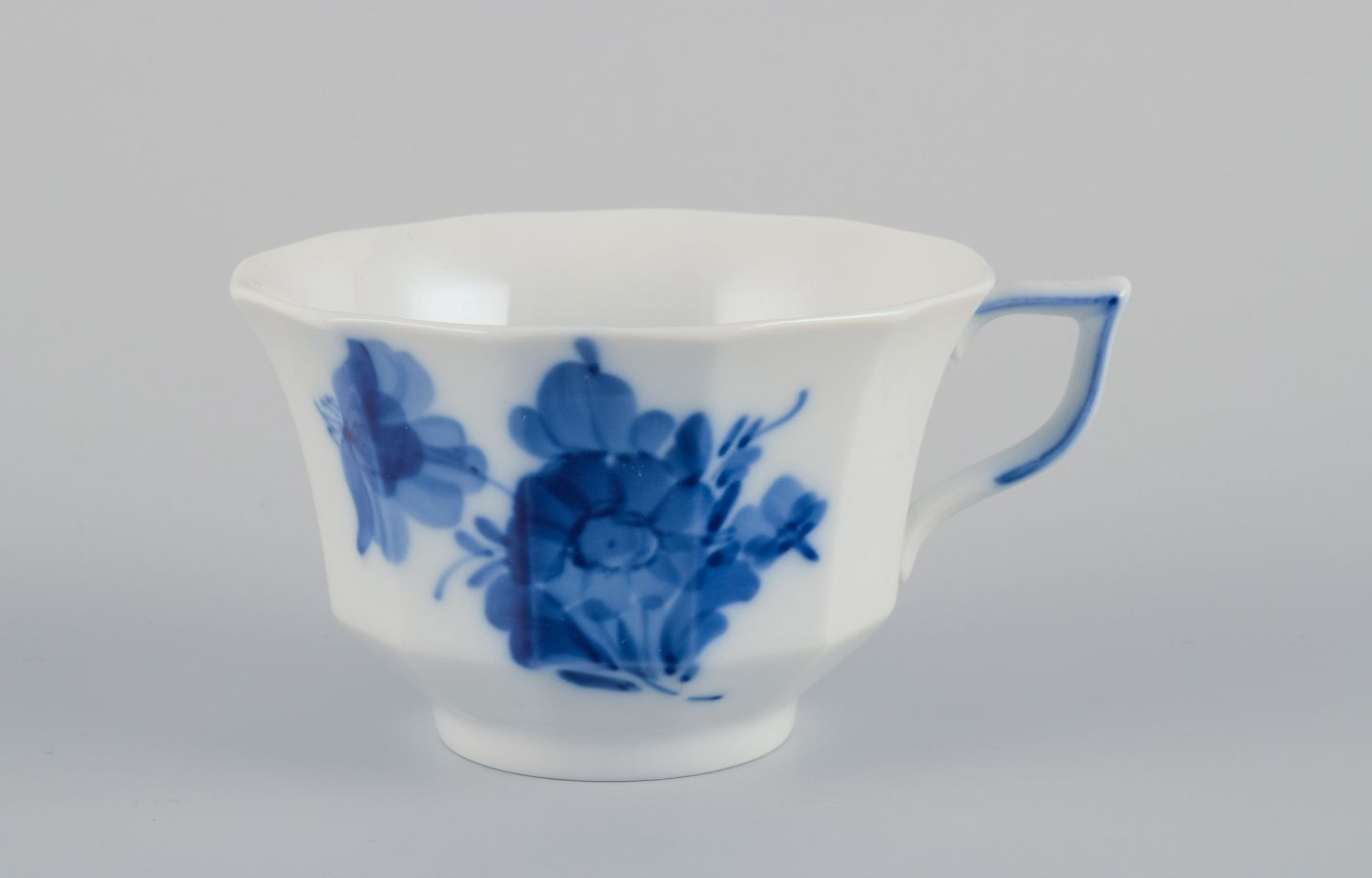 Royal Copenhagen Blå Blomst Kantet (Angular). Et sæt på seks kaffekopper med underkopper.