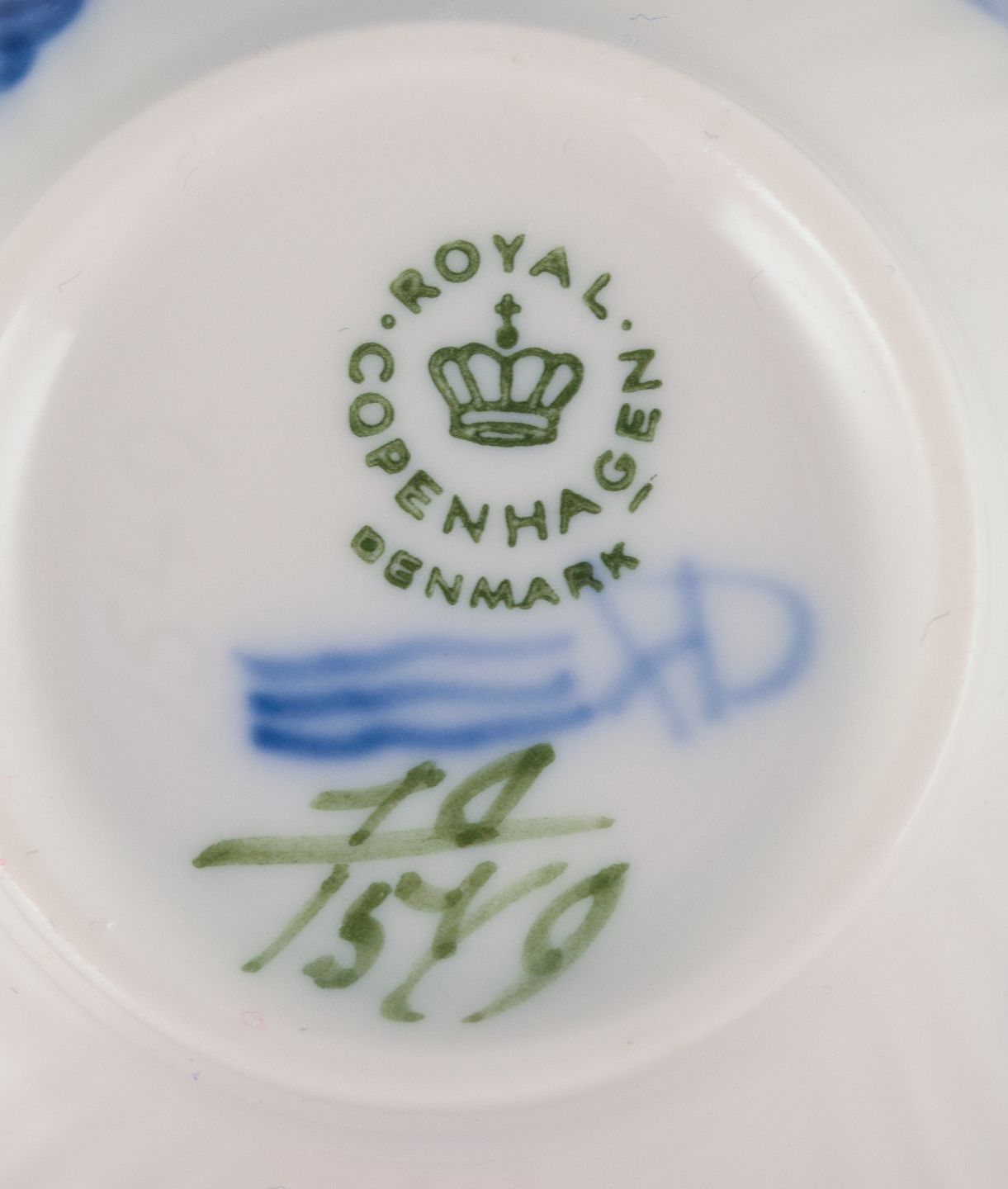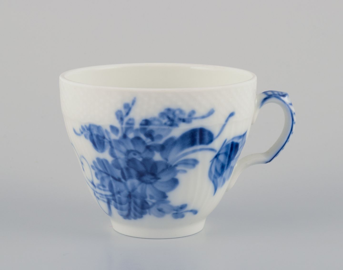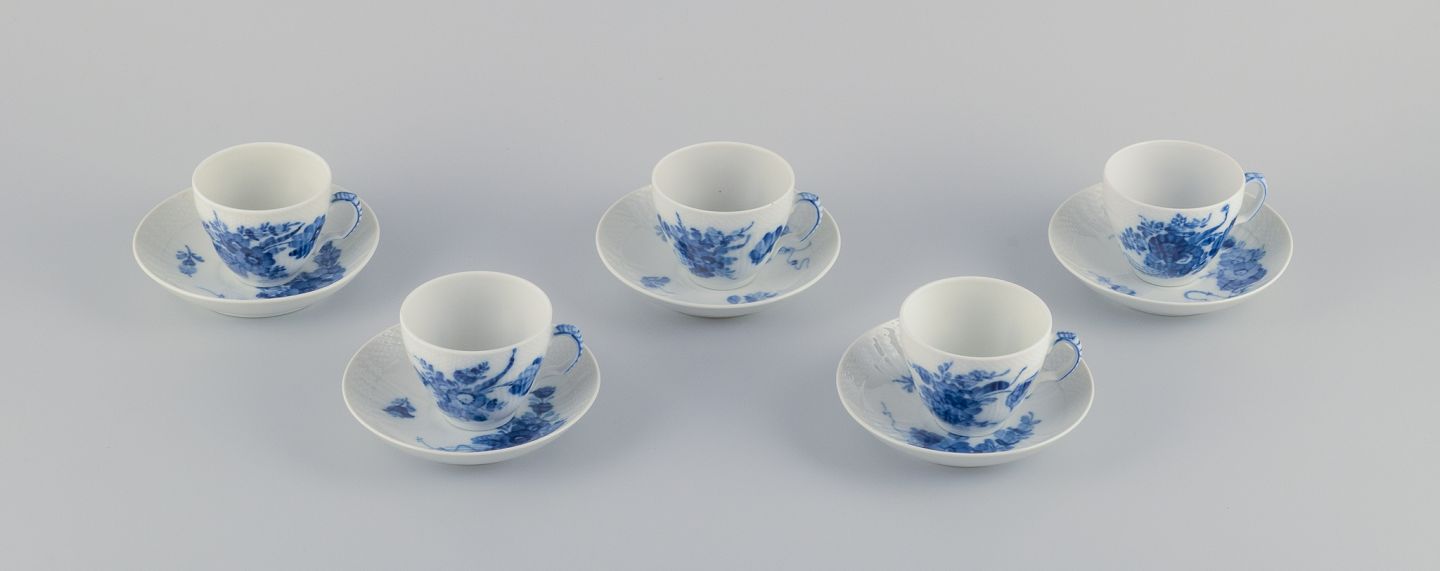 Royal Copenhagen Blå Blomst Svejfet. Et sæt på fem kaffekopper med tilhørende underkopper.