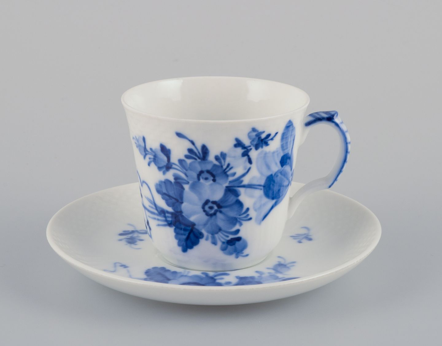 Royal Copenhagen Blå Blomst Svejfet. Et sæt på seks kaffekopper med tilhørende underkopper.