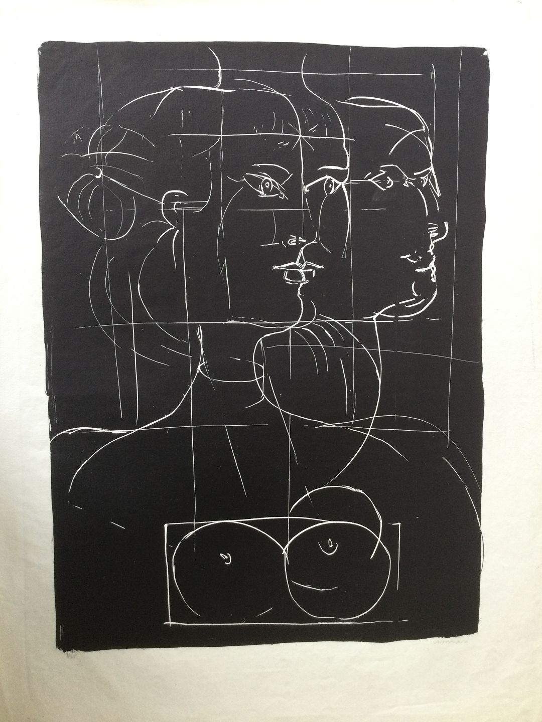 Text available in Danish: Litografi af Bruno Cassinari 1952 - Komposition med 2 nøgne kvinder.