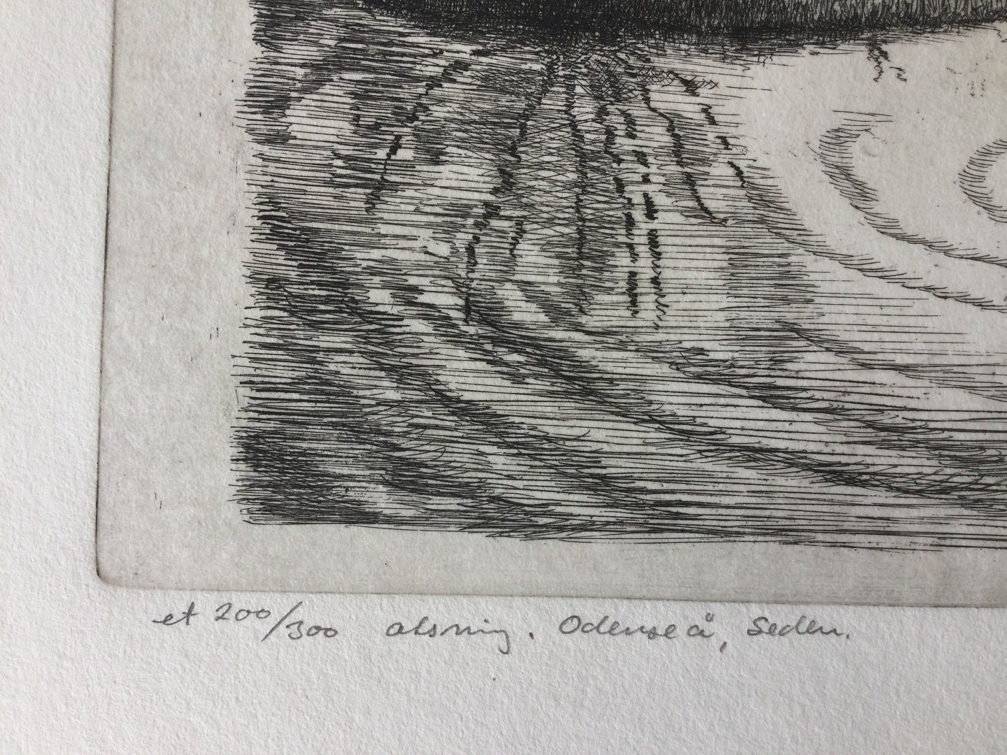 Text available in Danish: Ætsning af Egon Jørgensen 1990 - Fynsværket ved Odense å.
