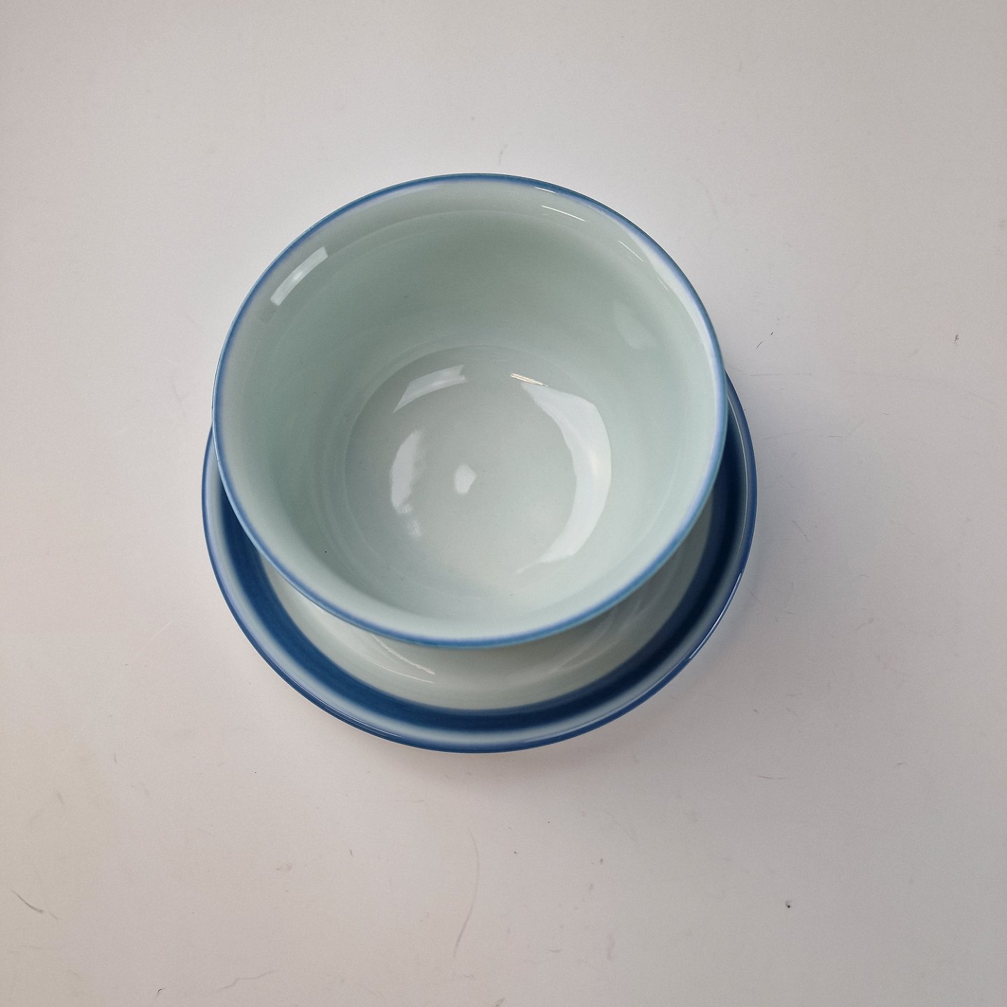 Stellets runde former er dækket med en silkeblød glasur og håndmalet med er lys almueblå farve lagt under glasuren. Stellet er ovnfast