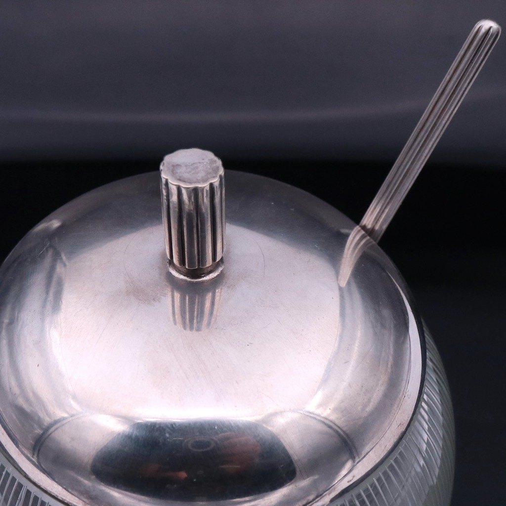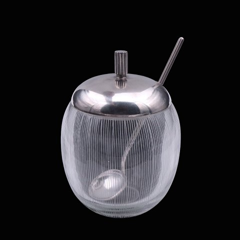 E. Dragsted. Krukke i glas med låg og ske i sølv.