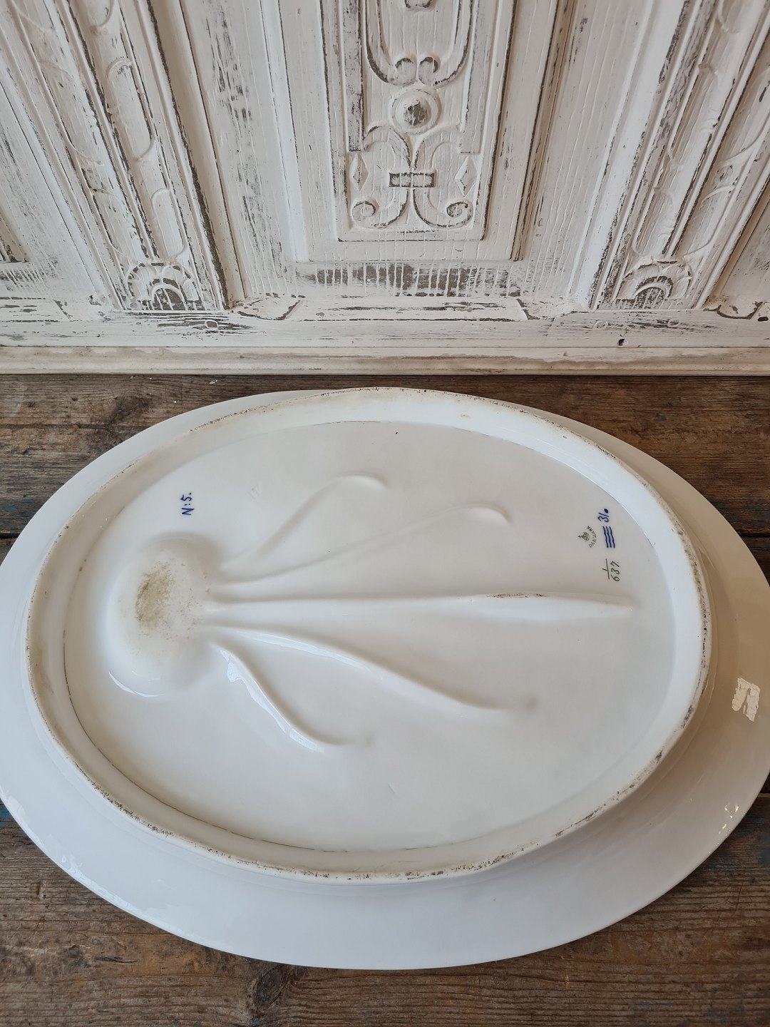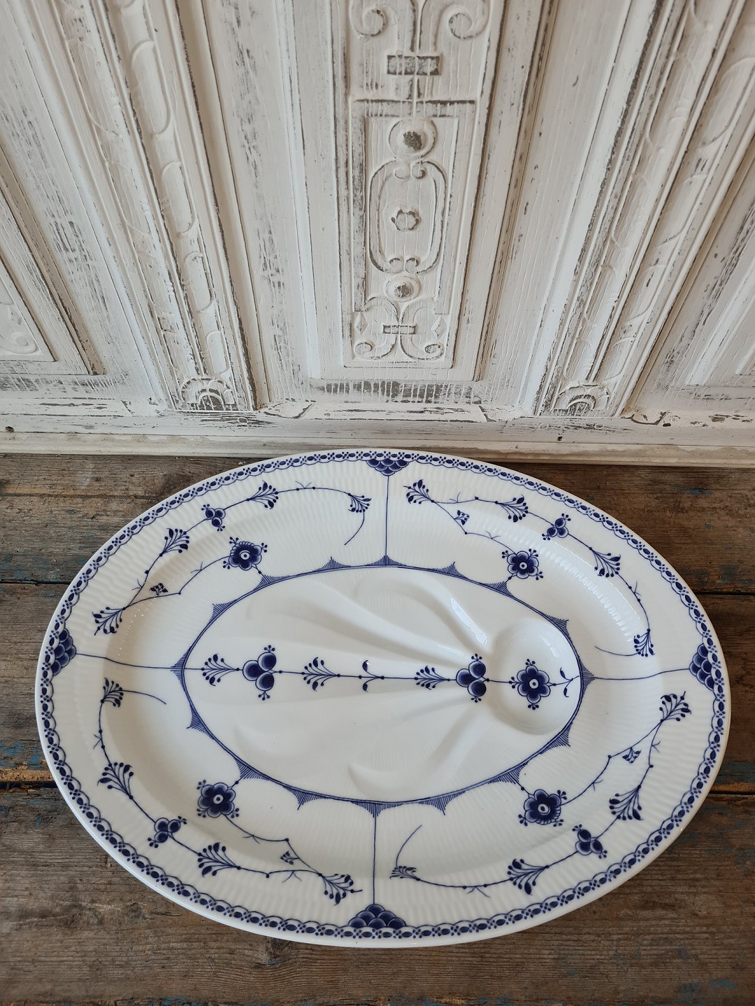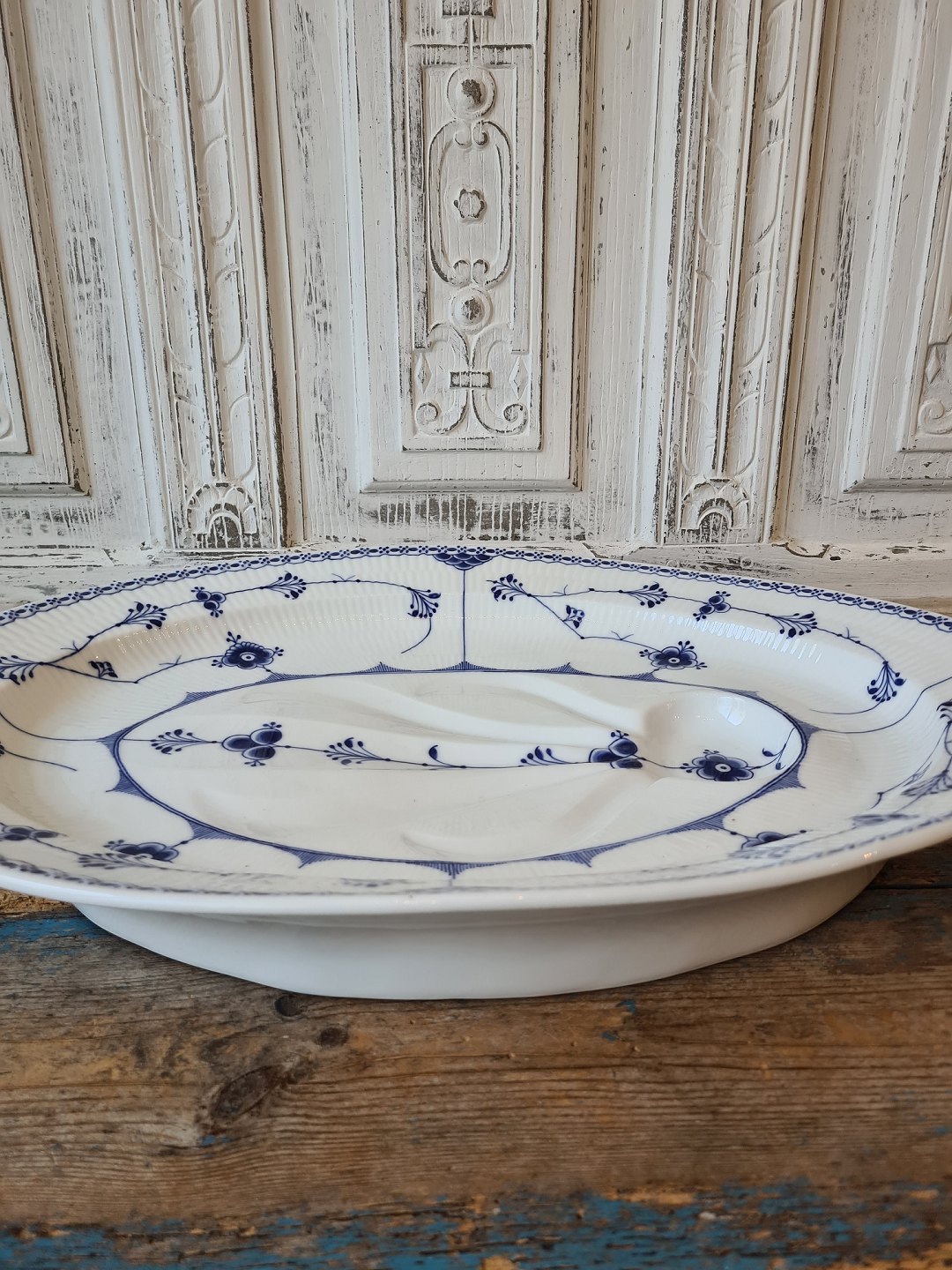 Royal Copenhagen Musselmalet halvblonde stort sjældent fiskefad.