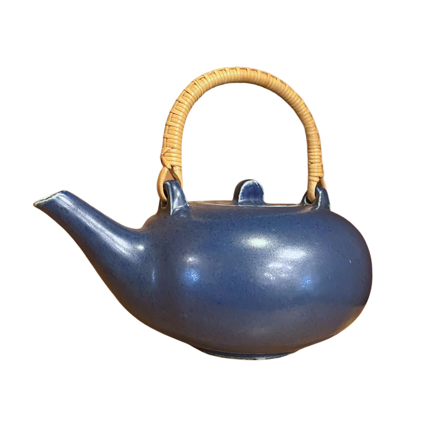 Eva Stæhr-Nielsen for Saxbo; Tekande af keramik dekoreret i en blå glasur. Med hank i flet.