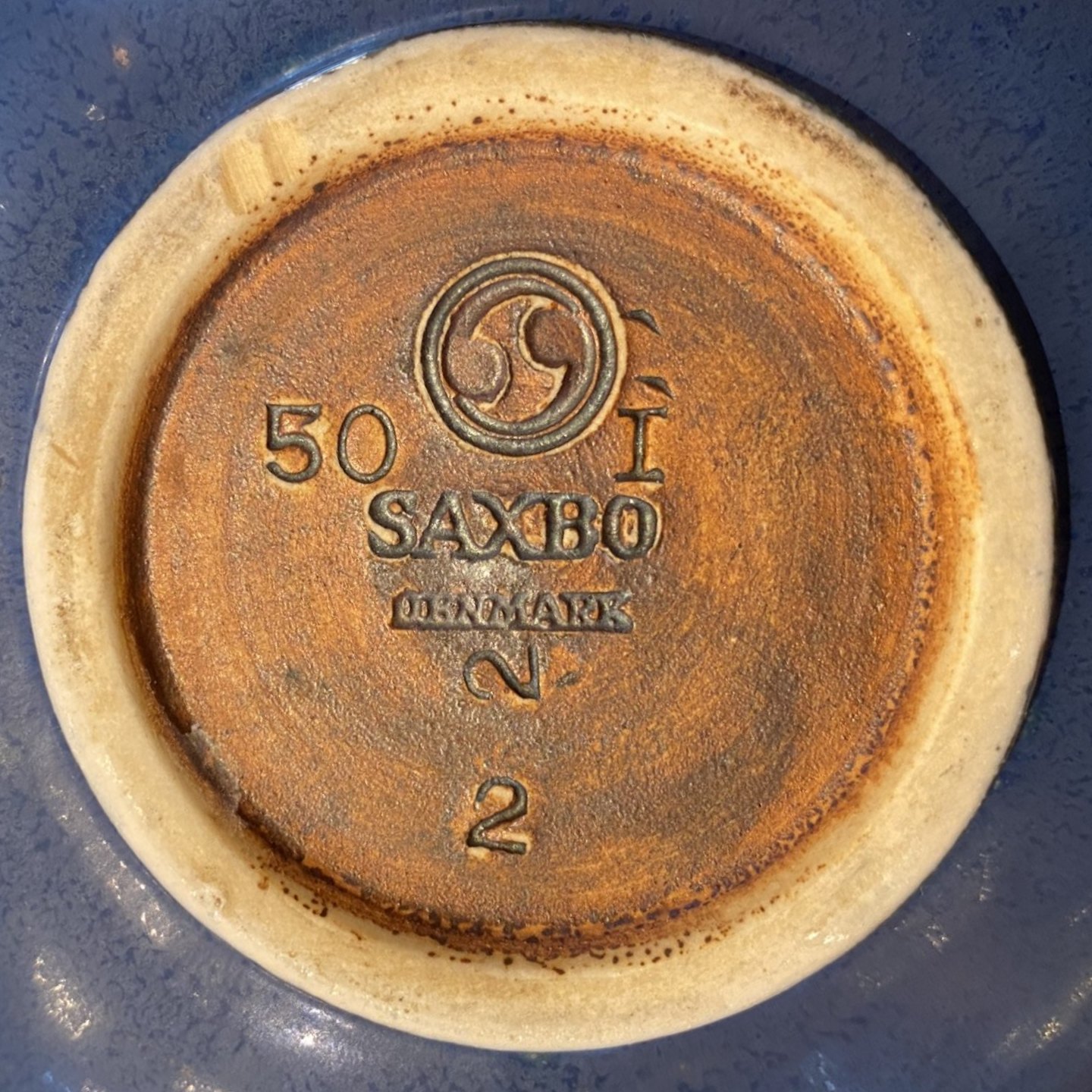 Saxbo, Eva Stæhr-Nielsen; Tekande i blåglaseret keramik med hank i flet