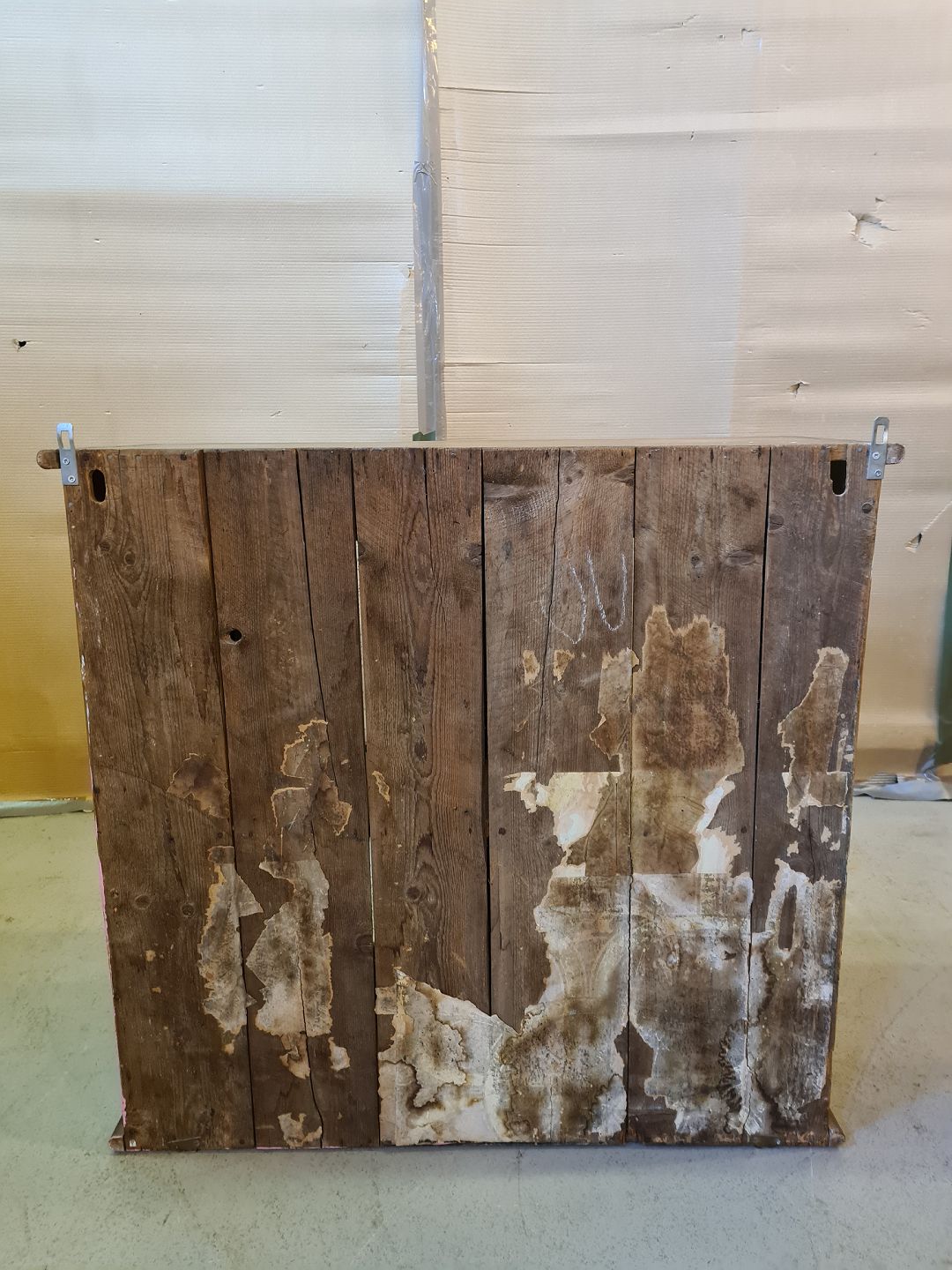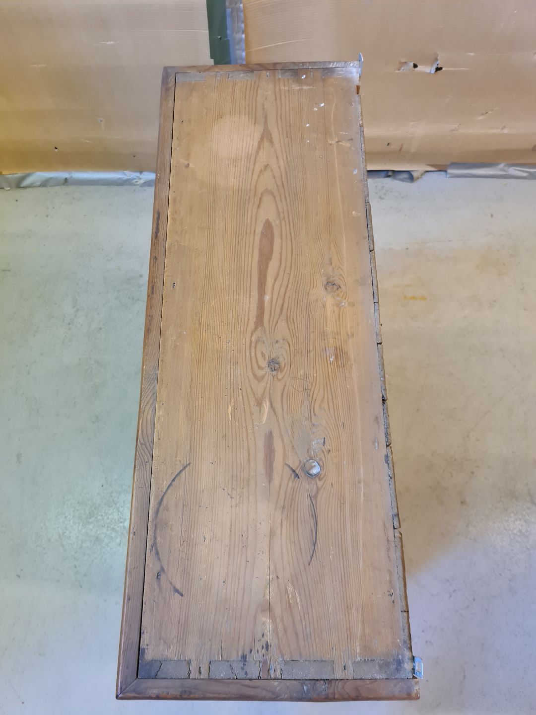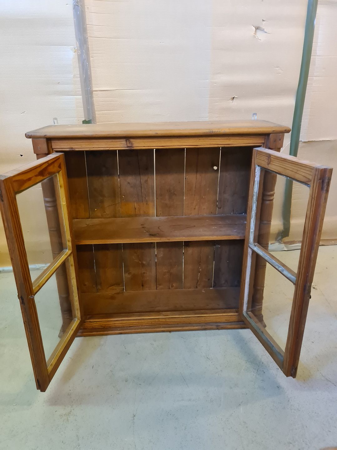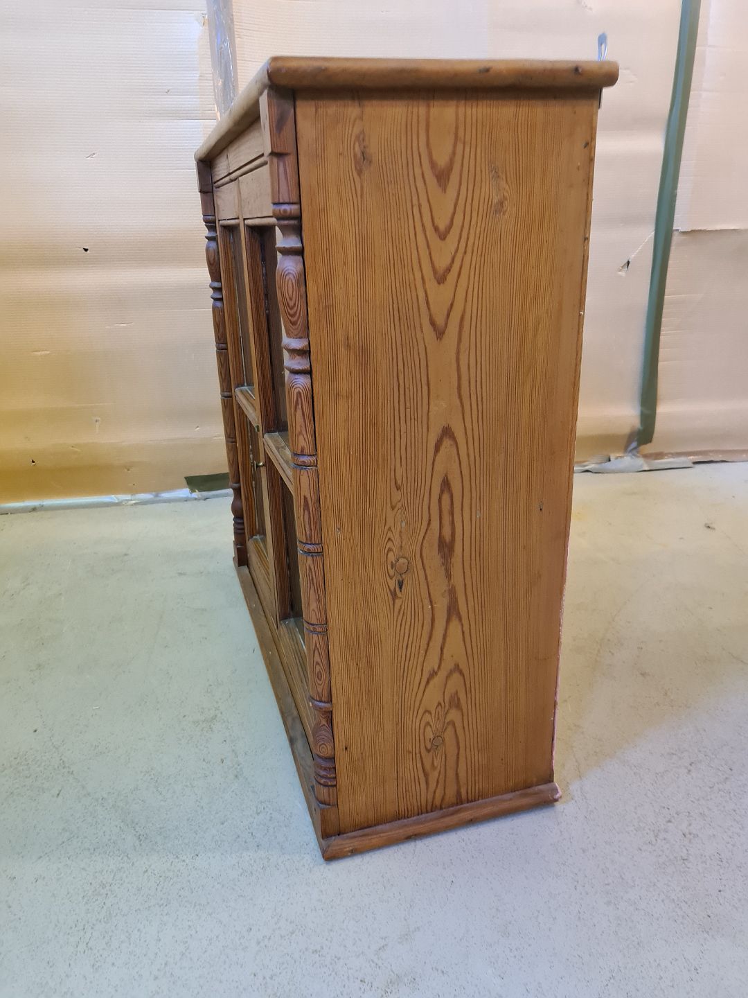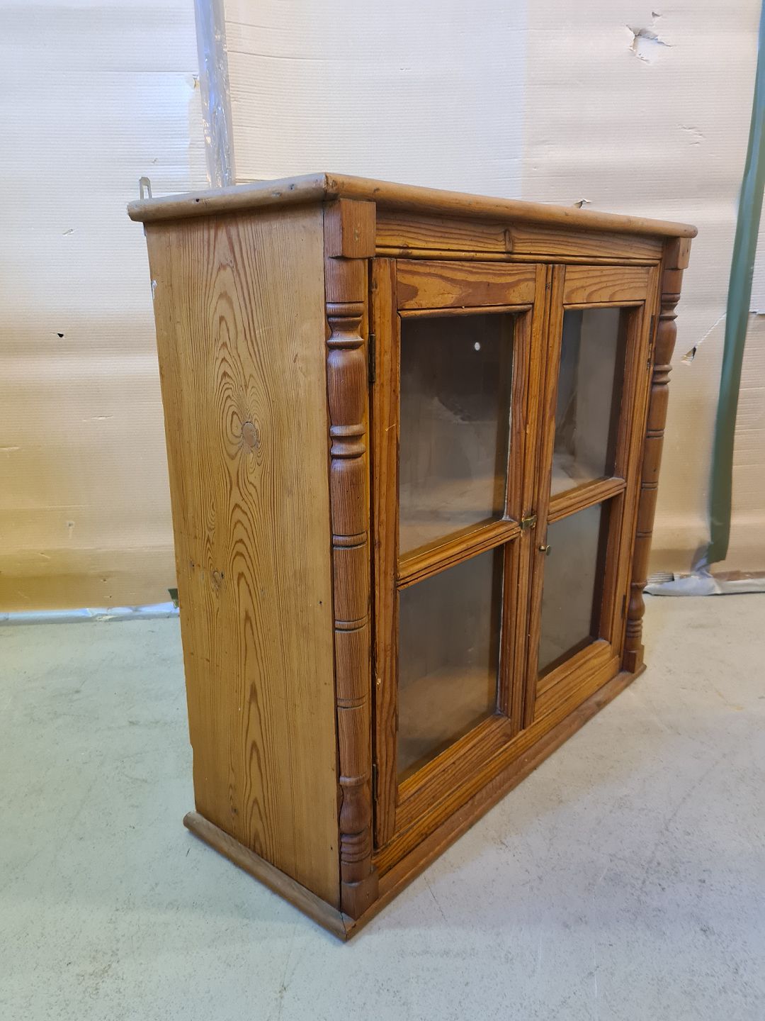 Vitrineskab i massivt fyrretræ, fra 1920erne.
