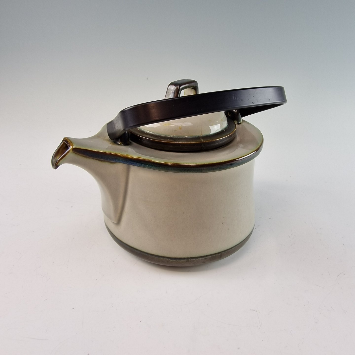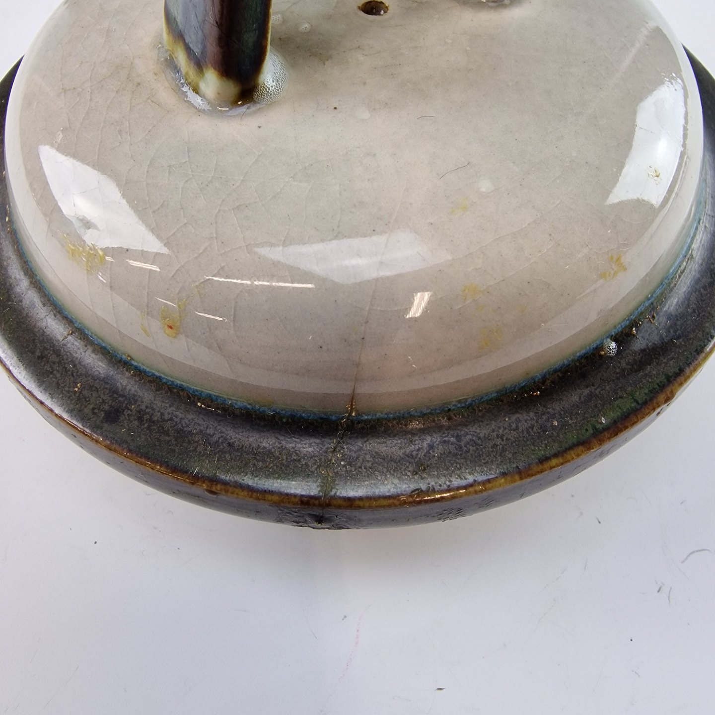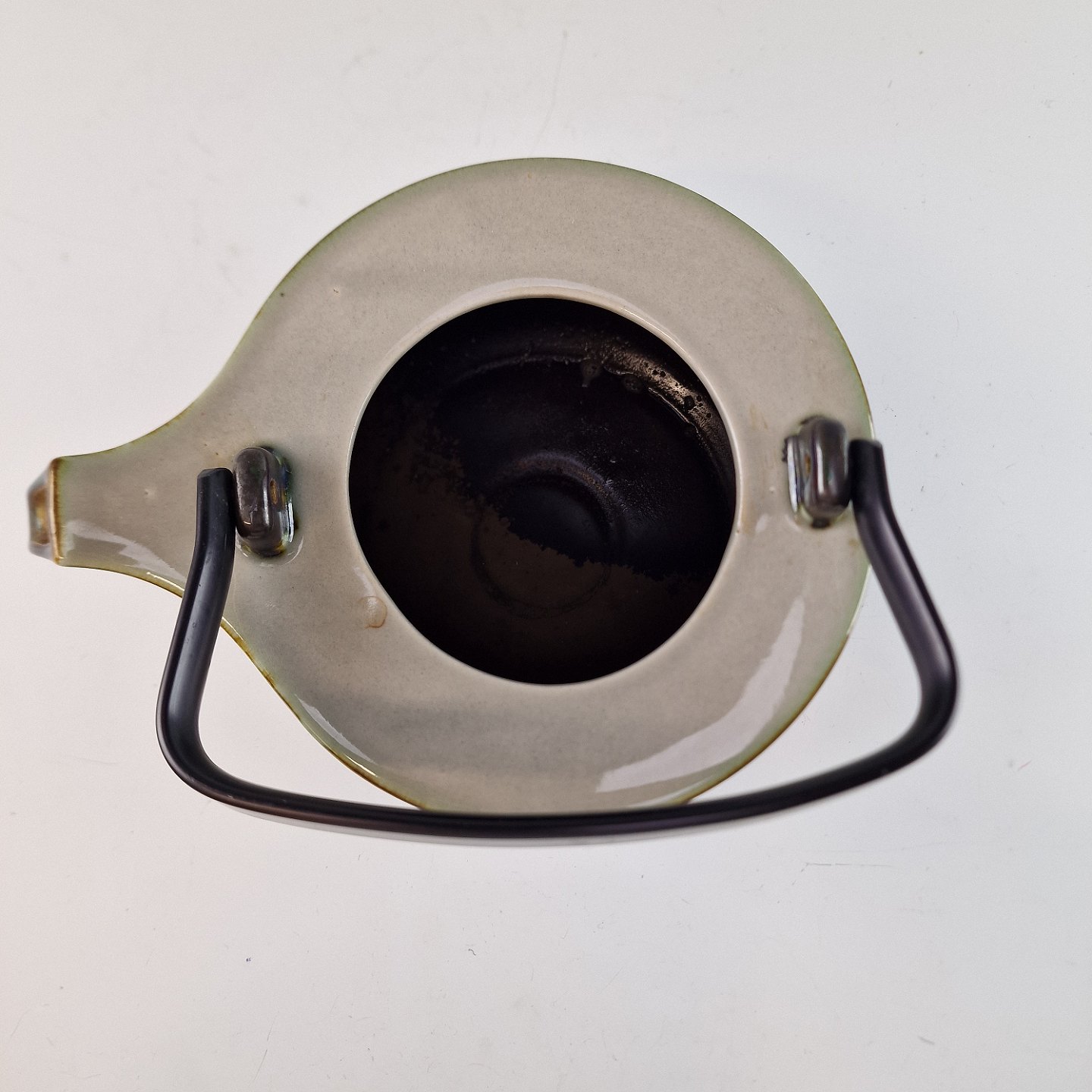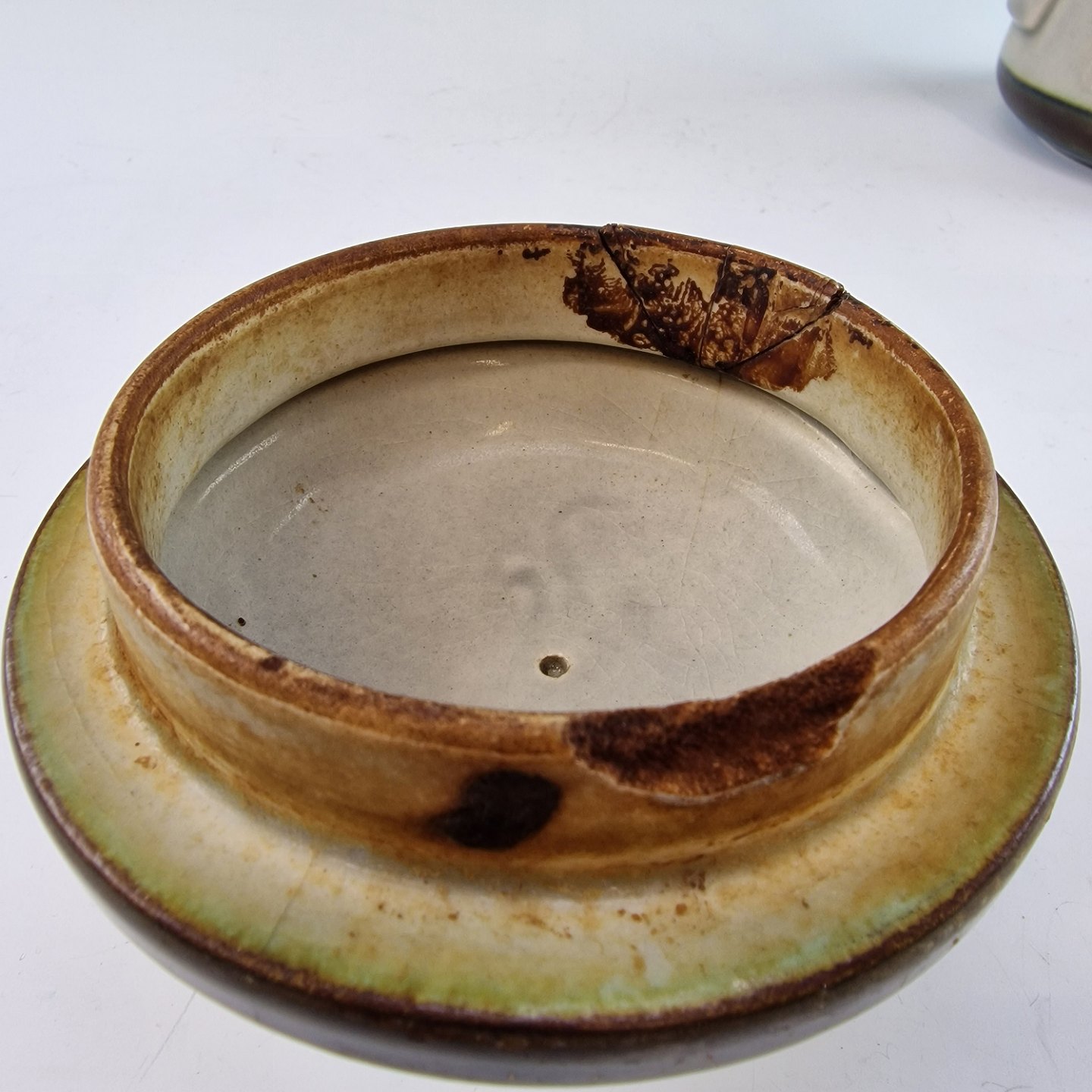 Stellet Tema er af stentøj, glaseret med lys grå og dekoreret med kanter af grønne og brune farver