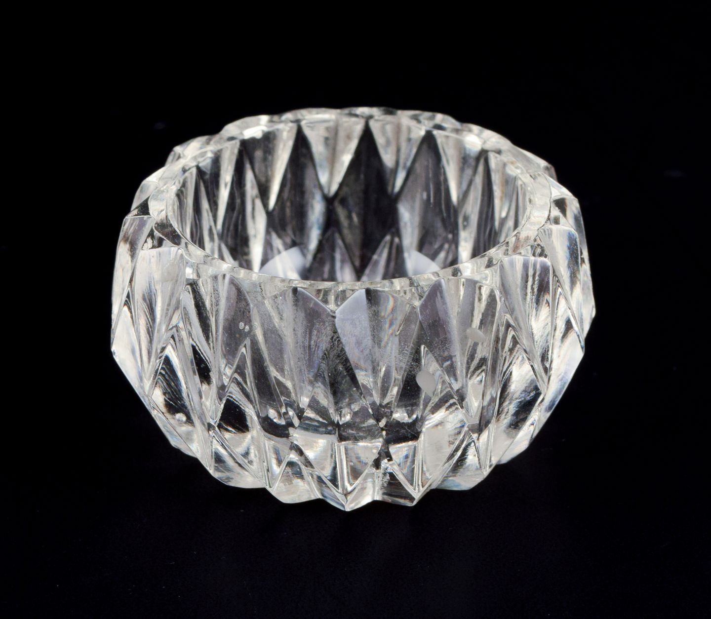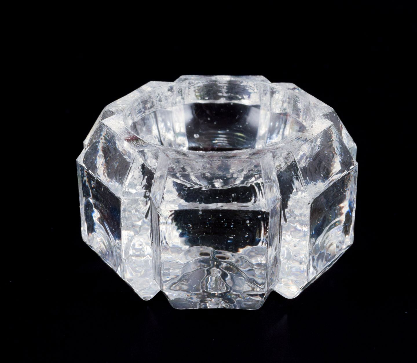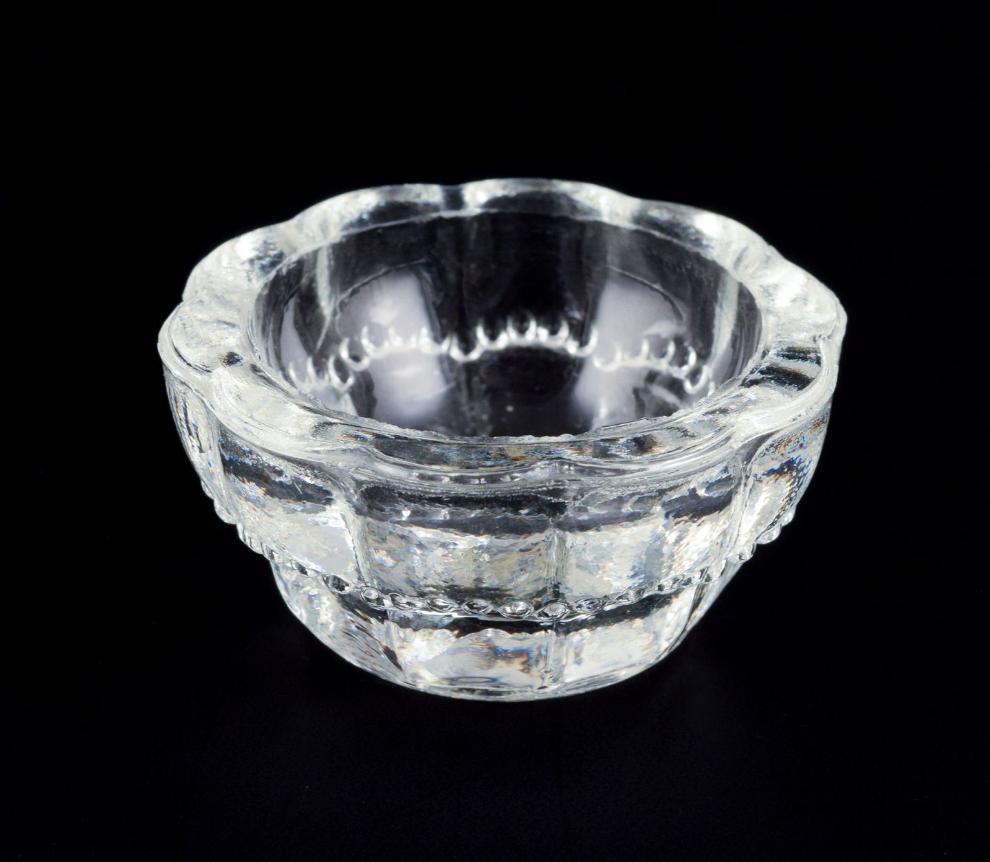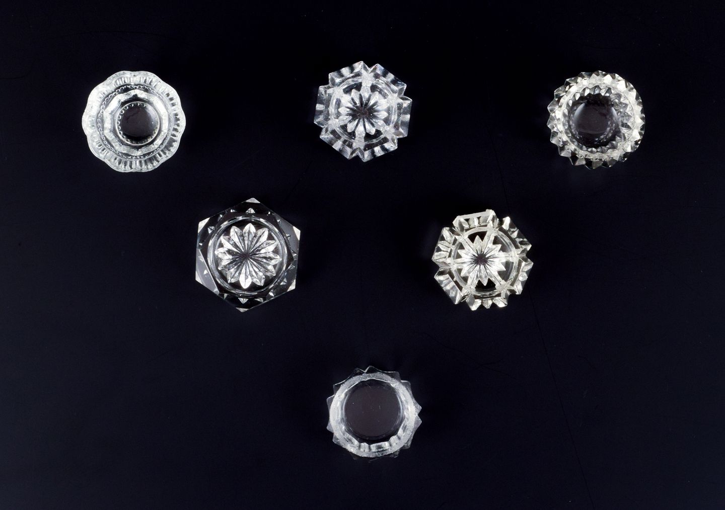 Seks saltkar i håndlavet klart glas.