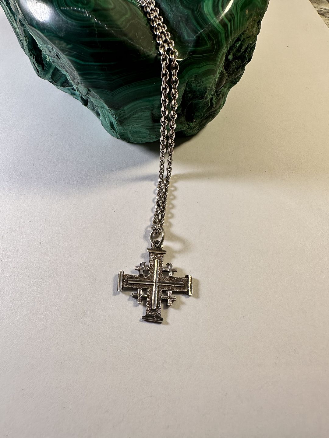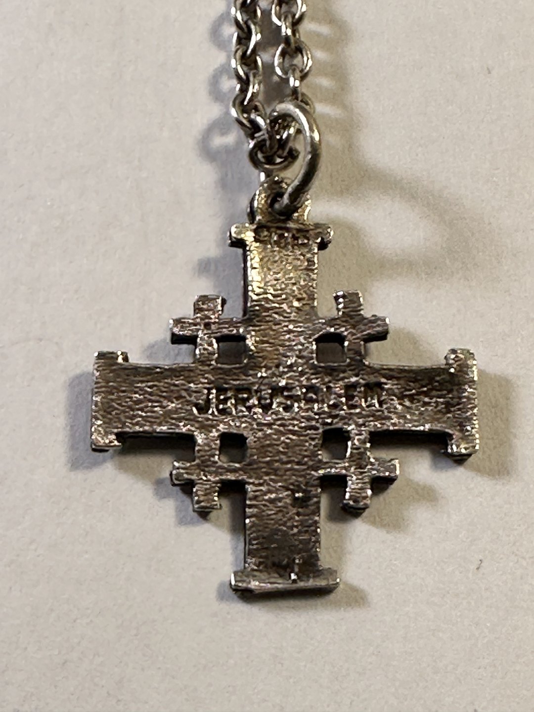 Old silver mug together with a necklace from the 1900s with cross stamp from Jerusalem. nice and well kept L 3.cm W 2.50 cm