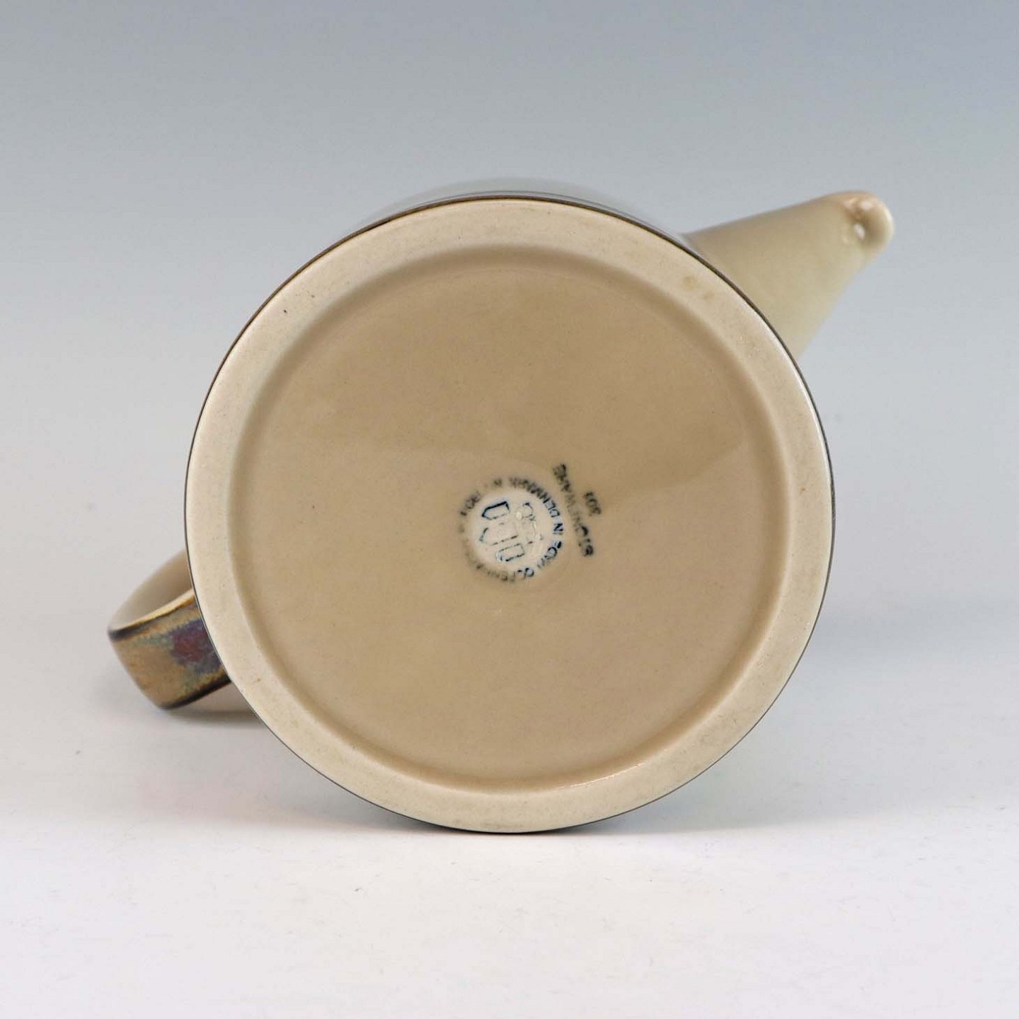 Stellet Peru er af stentøj, glaseret med lys grå farve og dekoreret med bånd af grøn/brunlige farve