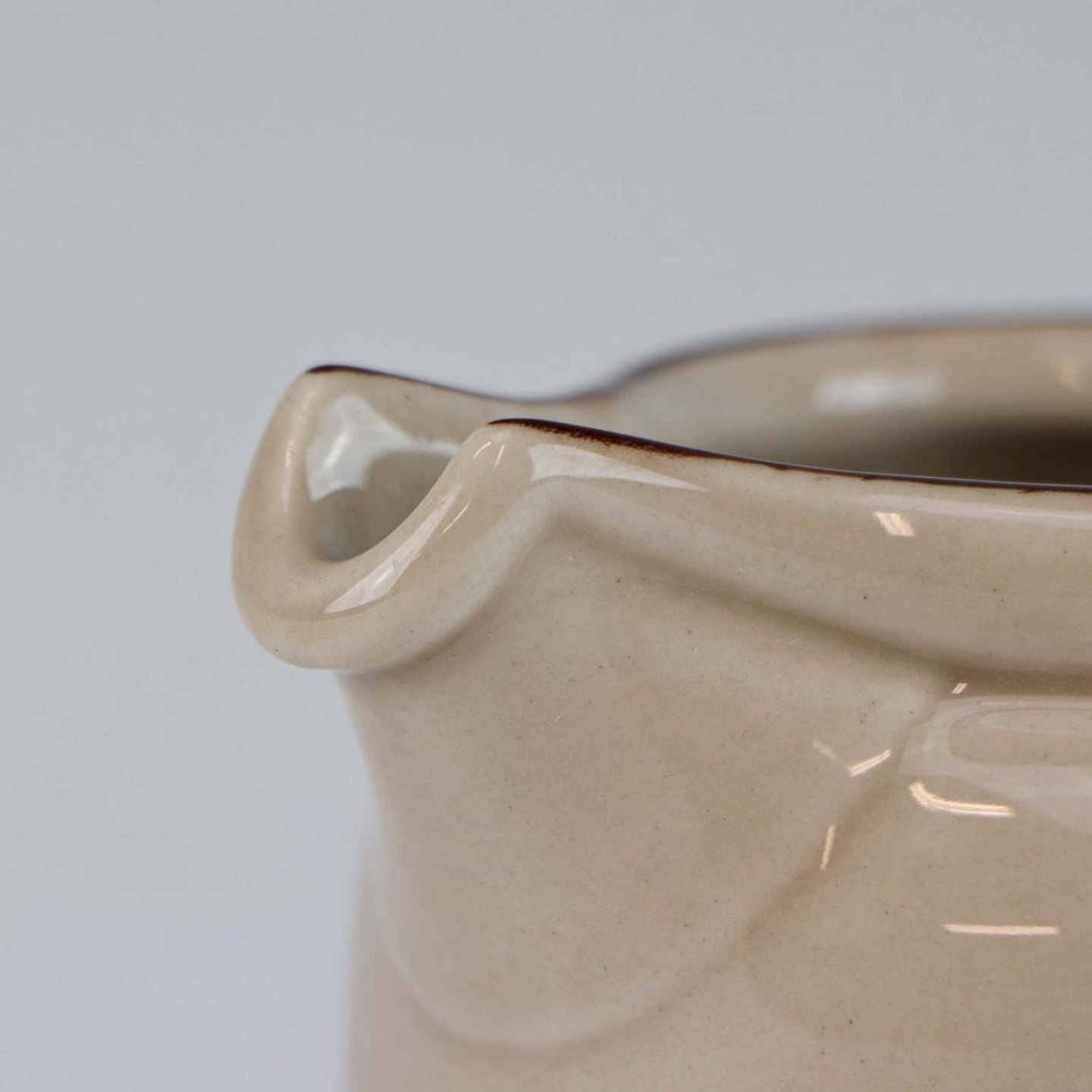 Stellet Peru er af stentøj, glaseret med lys grå farve og dekoreret med bånd af grøn/brunlige farve