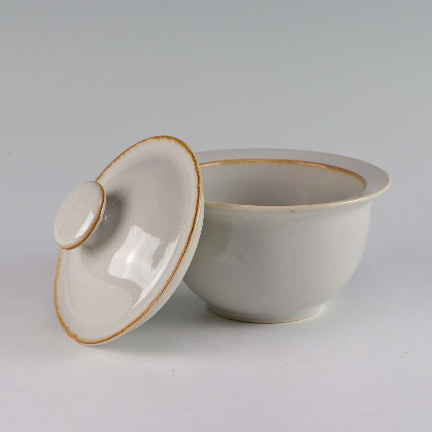 Stellet Coppelia er glaseret hvidt stentøj, dekoreret med kanter af lys brun farve