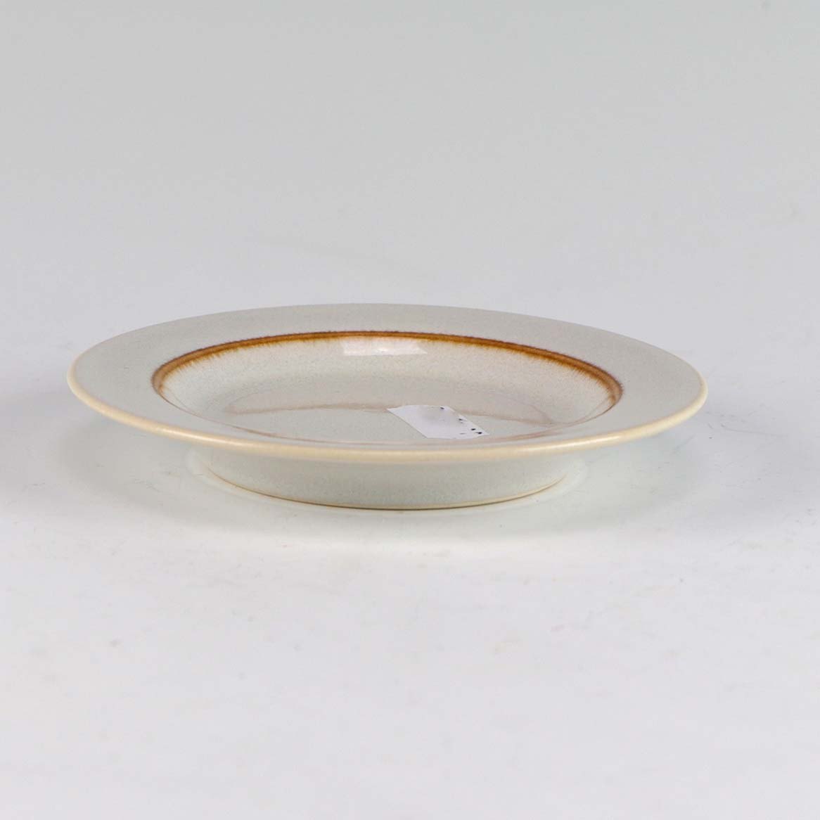 Stellet Coppelia er glaseret hvidt stentøj, dekoreret med kanter af lys brun farve