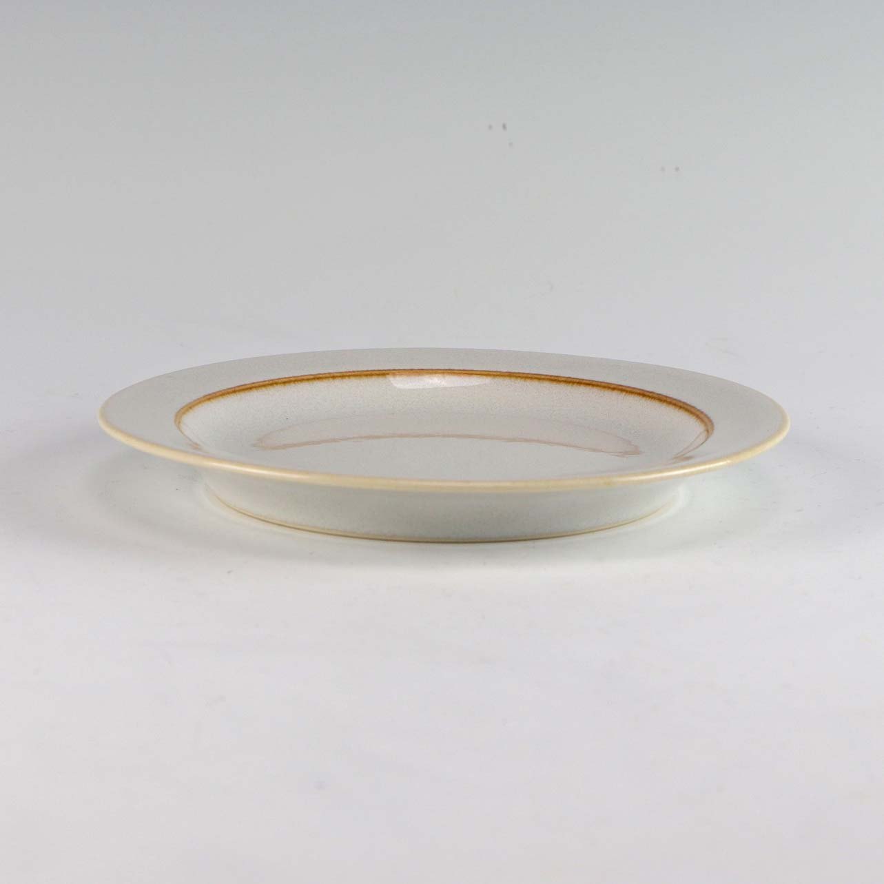 Stellet Coppelia er glaseret hvidt stentøj, dekoreret med kanter af lys brun farve