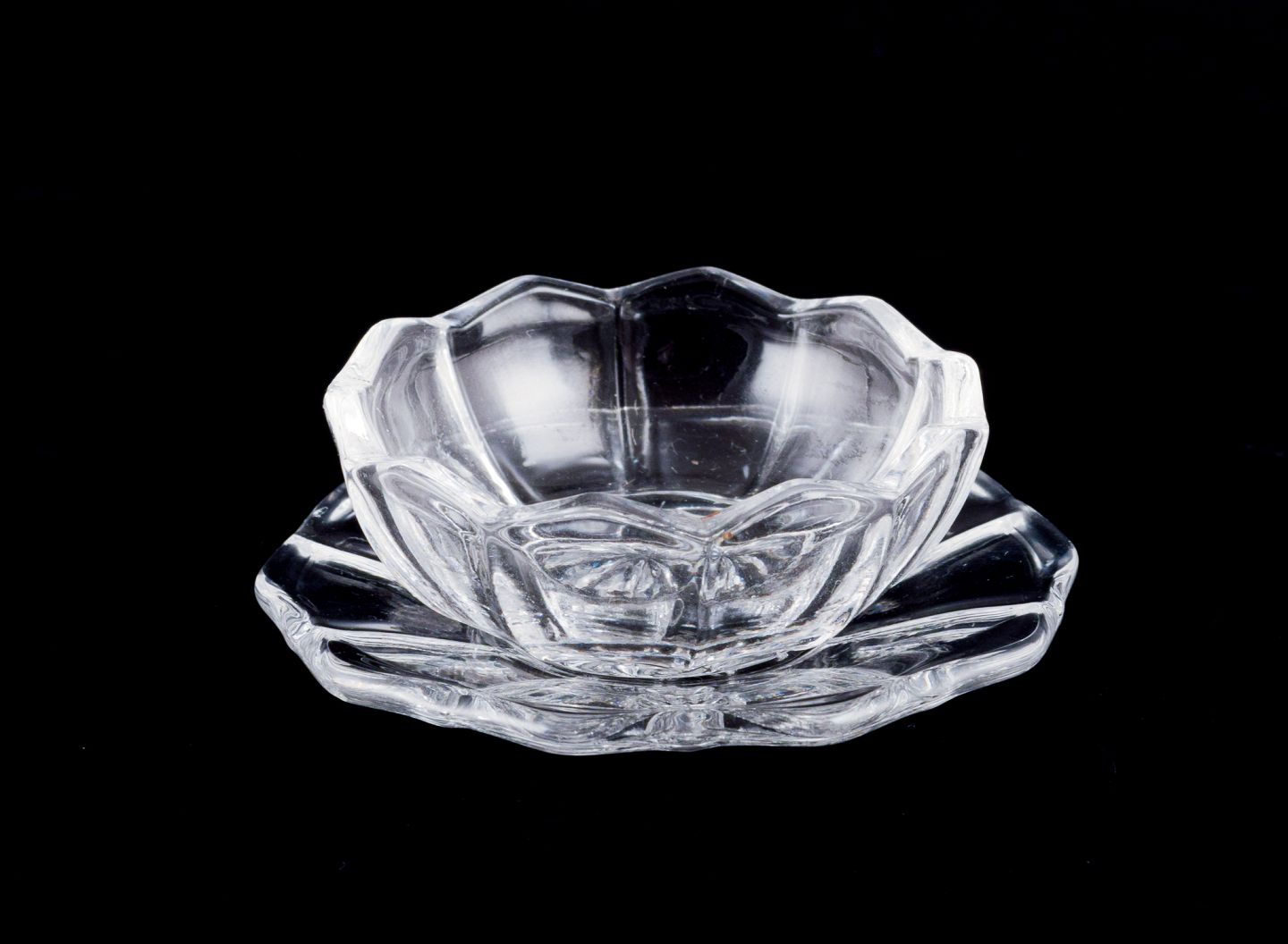 Five salt cellars in clear handmade glass.