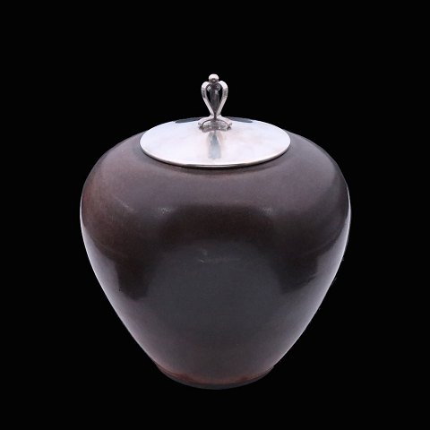 Saxbo - C. Jensen. Large Stoneware Jar with Silver Lid.