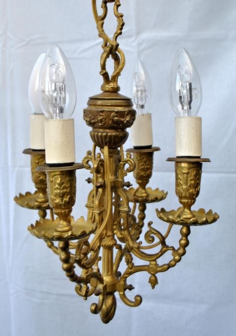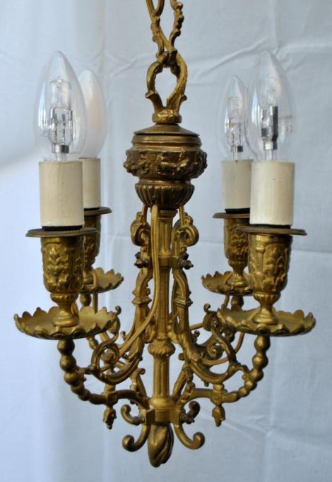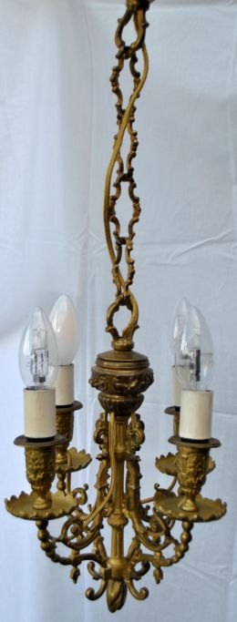 Fransk loftsbelysning i bronze, 19. årh. Med blomsterornamentik. Oprindelig til levende lys - konverteret til el. H.: 31 cm.