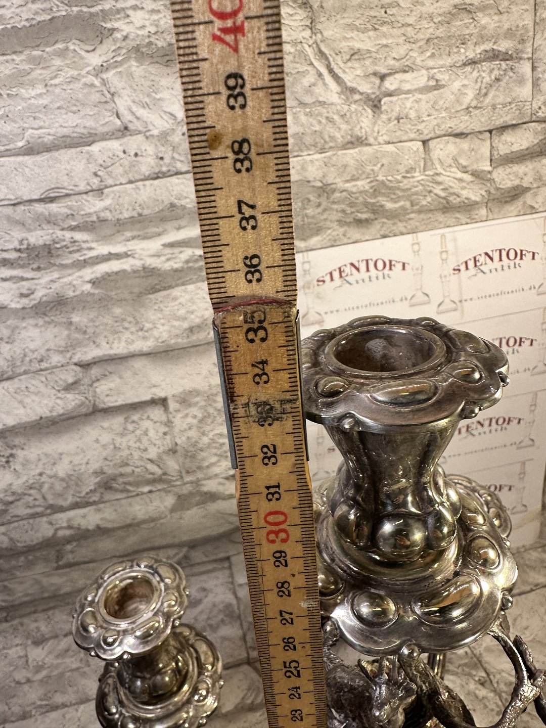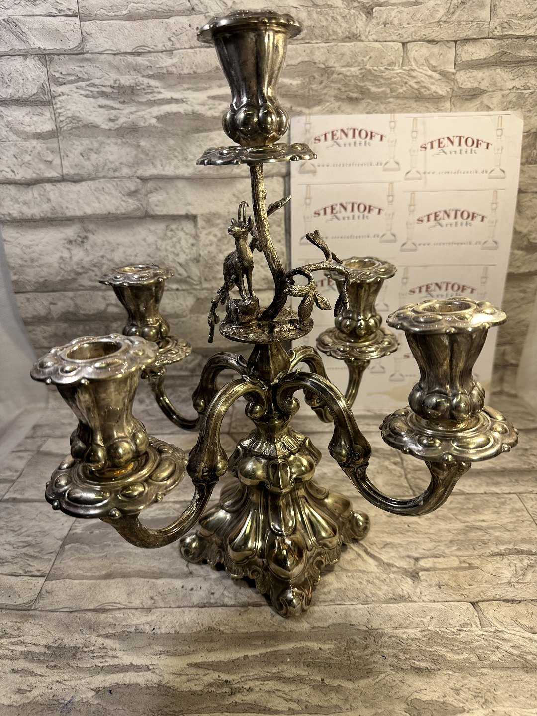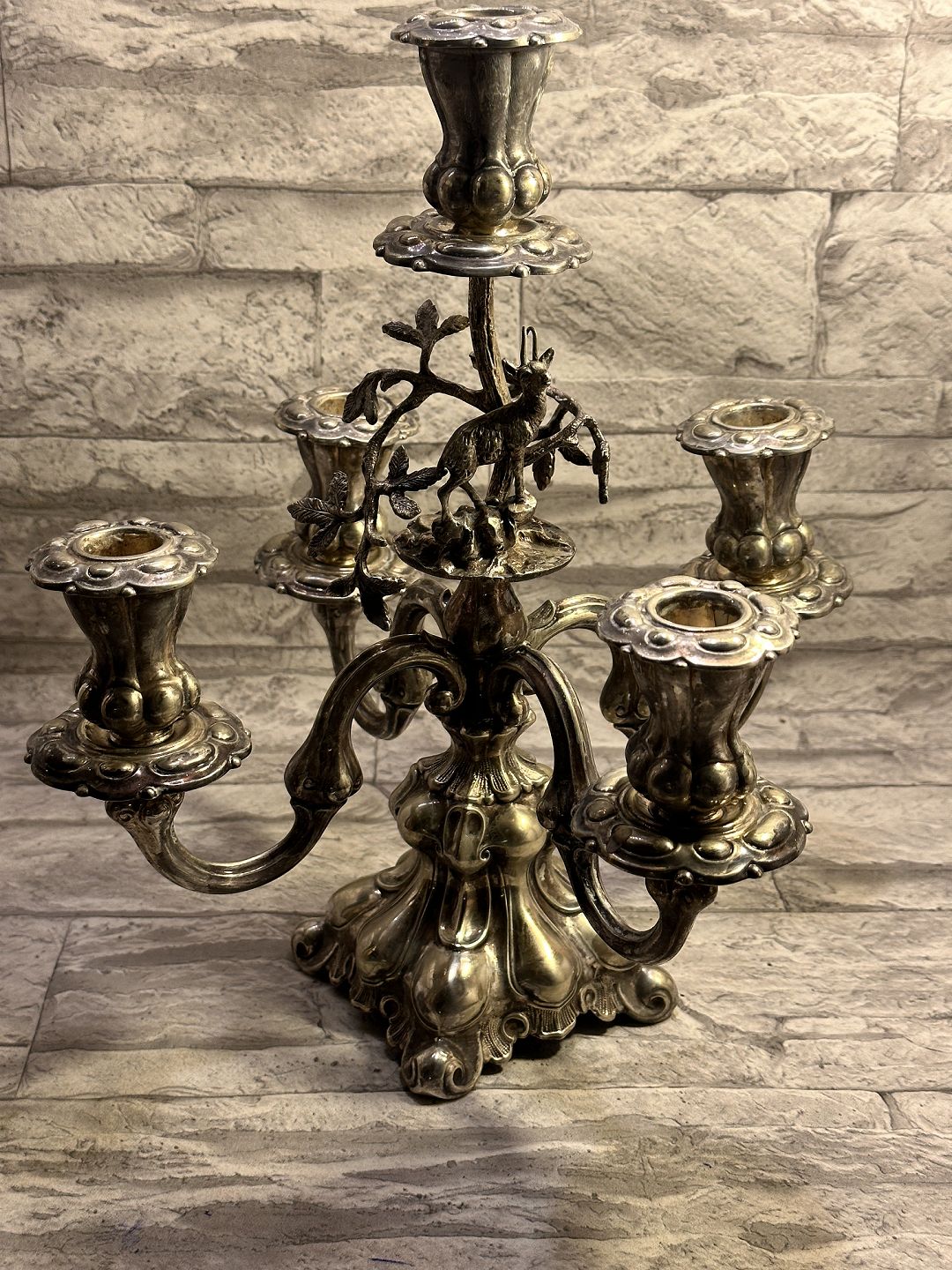 Alter einzigartiger Rokoko-Kerzenhalter mit 5-armigem Silberfleck. aus den 1930er Jahren H 34 cm Neusilber