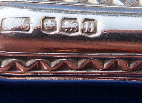Stempel: RFM, Krone(for Sheffield), løve mod venstre(for sterlingsølv), N(for år 1930-31).