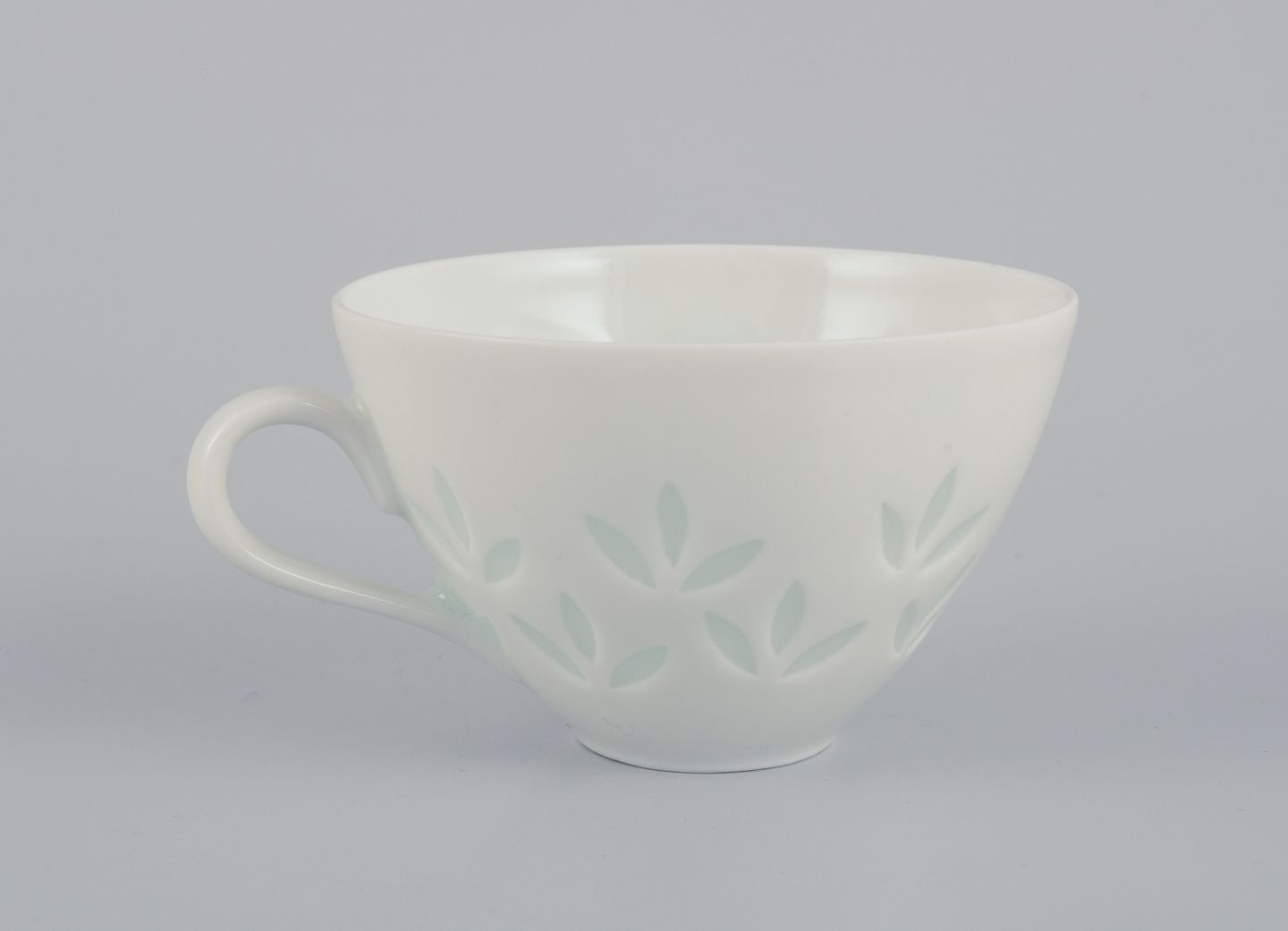 Friedl Kjellberg for Arabia, Finland. Et sæt på fire kaffekopper med tilhørende underkopper i ris-porcelæn.