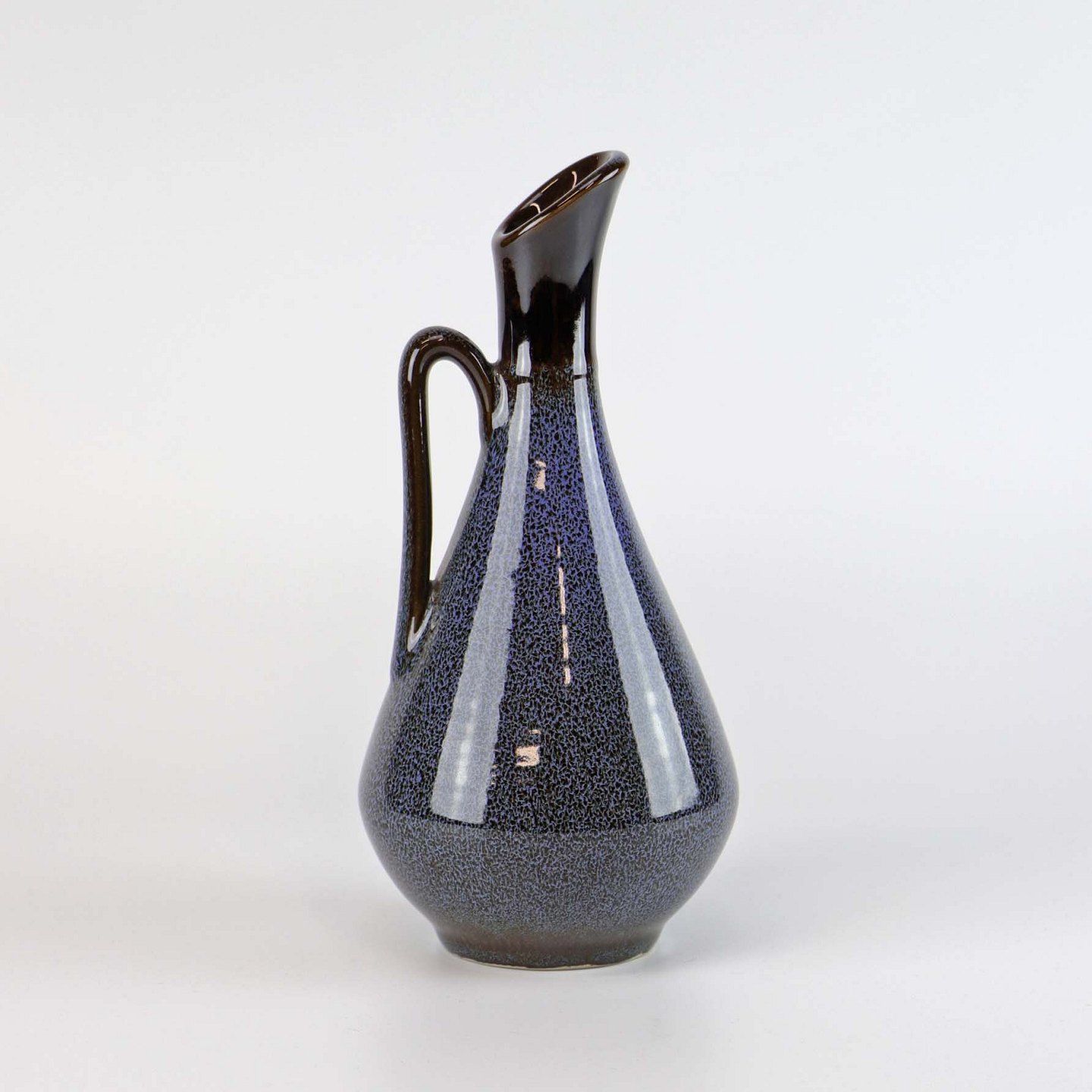 Vase af stentøj i meleret blå og sorte farver