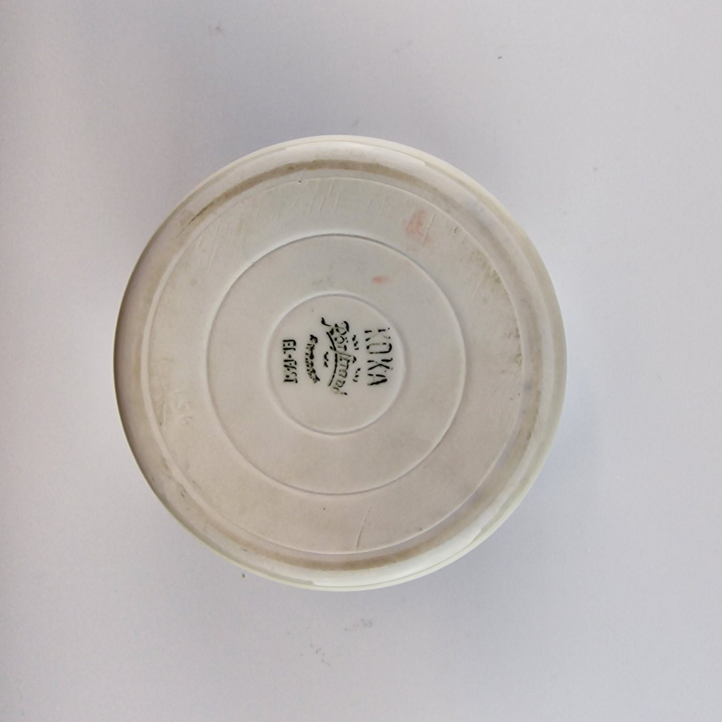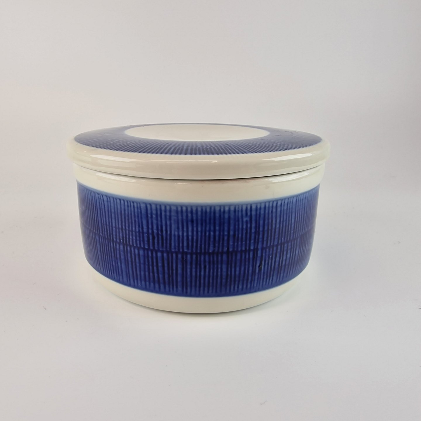 Blå Koka er af hvidt glaseret porcelæn med et bånd af mørk blå