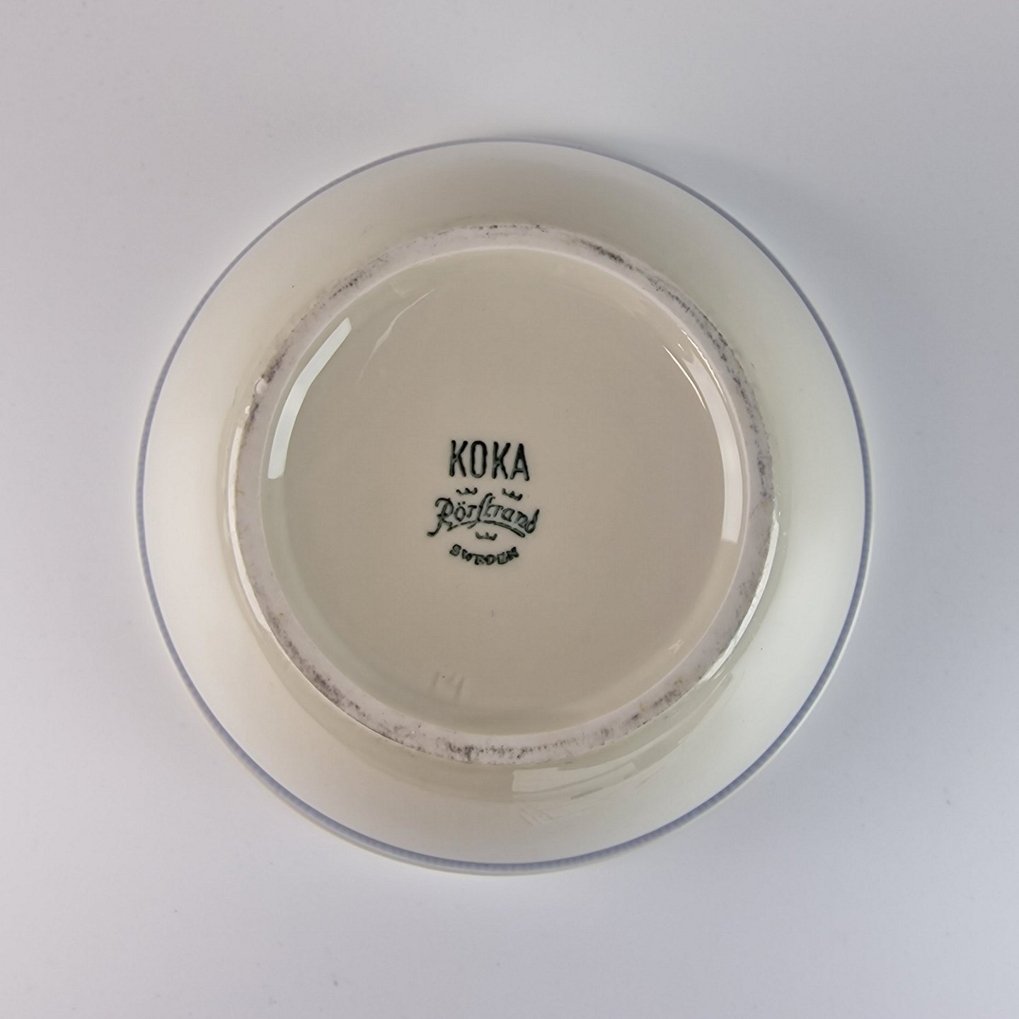 Blå Koka er af hvidt glaseret porcelæn med et bånd af mørk blå